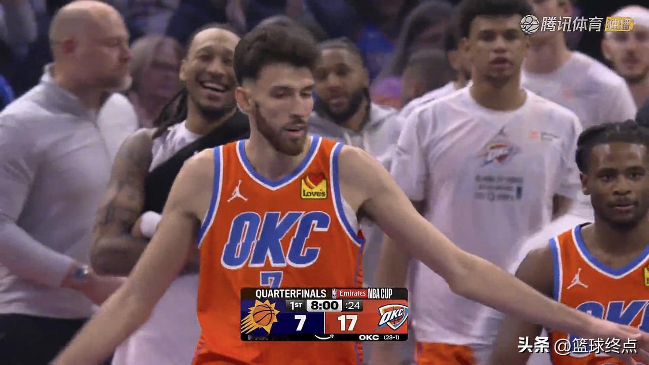 上半场最佳:切特.霍姆格伦!遮天大帽送给狄龙,NBA杯赛1/4决赛雷霆队76-4