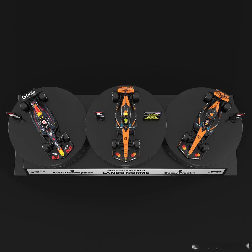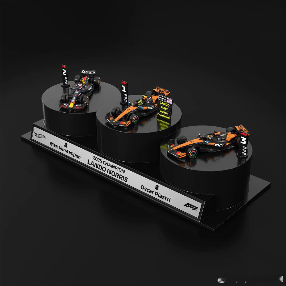 风火轮真是拿着F1授权狂薅啊前阵子官网上刚发售过F1联名的工厂大套装,这回又来了个2025赛季领奖台套装,其中包括本赛季积分榜前三名车手兰多·诺里斯、马克斯·维斯塔潘、奥斯卡·皮亚斯特里的赛车,特殊领奖台底座,以及一些标志牌。来看看发售信息吧➡️发售地址:mattelcreations官网➡️发售时间:洛杉矶时间12月12日周五9am➡️国内时间:北京时间12月13日周六1am➡️发售价格:35美元(不含税运费)➡️限量:没说➡️每账号限购:没说要我客观说的话其实这个套装的特殊之处也就是包装和一些领奖台上的标志牌,这三款小车都会单独发售的所以你如果是奔着车去的还不如再等等铺大货要我主观点说的话本人潘粉,见证了潘子从104分差距赶到赛季末2分差距最后与WDC擦肩而过……潘粉都想看大逆袭,但这不是电影,这是现实电影里可以有完美的逆袭结局,但现实不会;电影里导演可以通过各种手法抹平这2分差距然后大家一起包饺子,但现实不会我当然恭喜诺里斯的WDC冠军,但我实在不想看这领奖台然后时刻被这2分差距提醒现实有多残酷(图片为效果图,并非实物图)