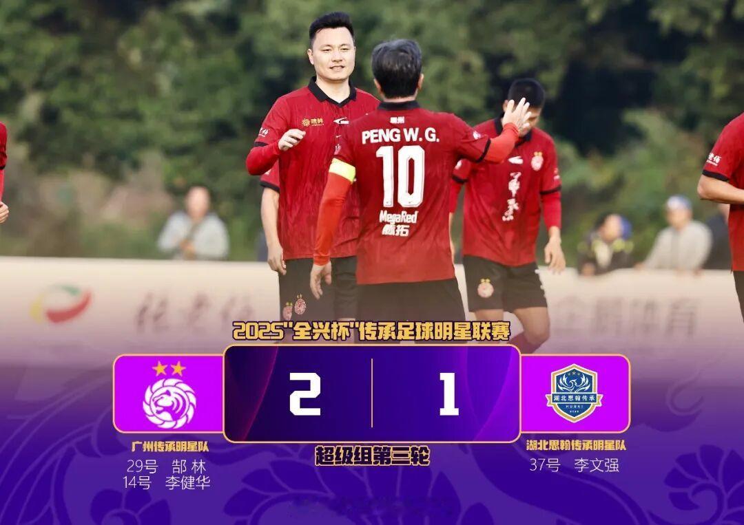 2025年中国传承足球明星联赛第3轮湖北思瀚传承队1-2广州传承明星队,依然难求一胜!湖北队李文强破门,广州队郜林和李建华进球。中国传承足球明星赛老甲A联赛湖北足球湖北足球