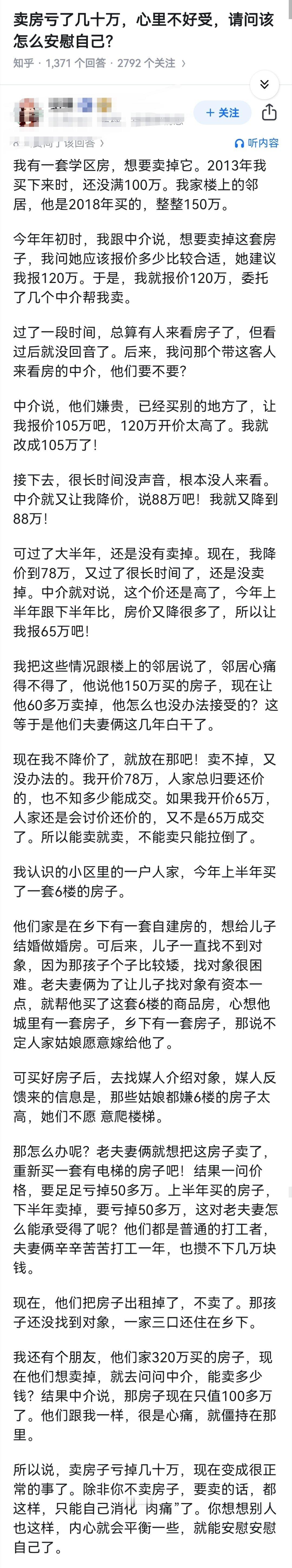 卖房亏了几十万,心里不好受,请问该怎么安慰自己?
