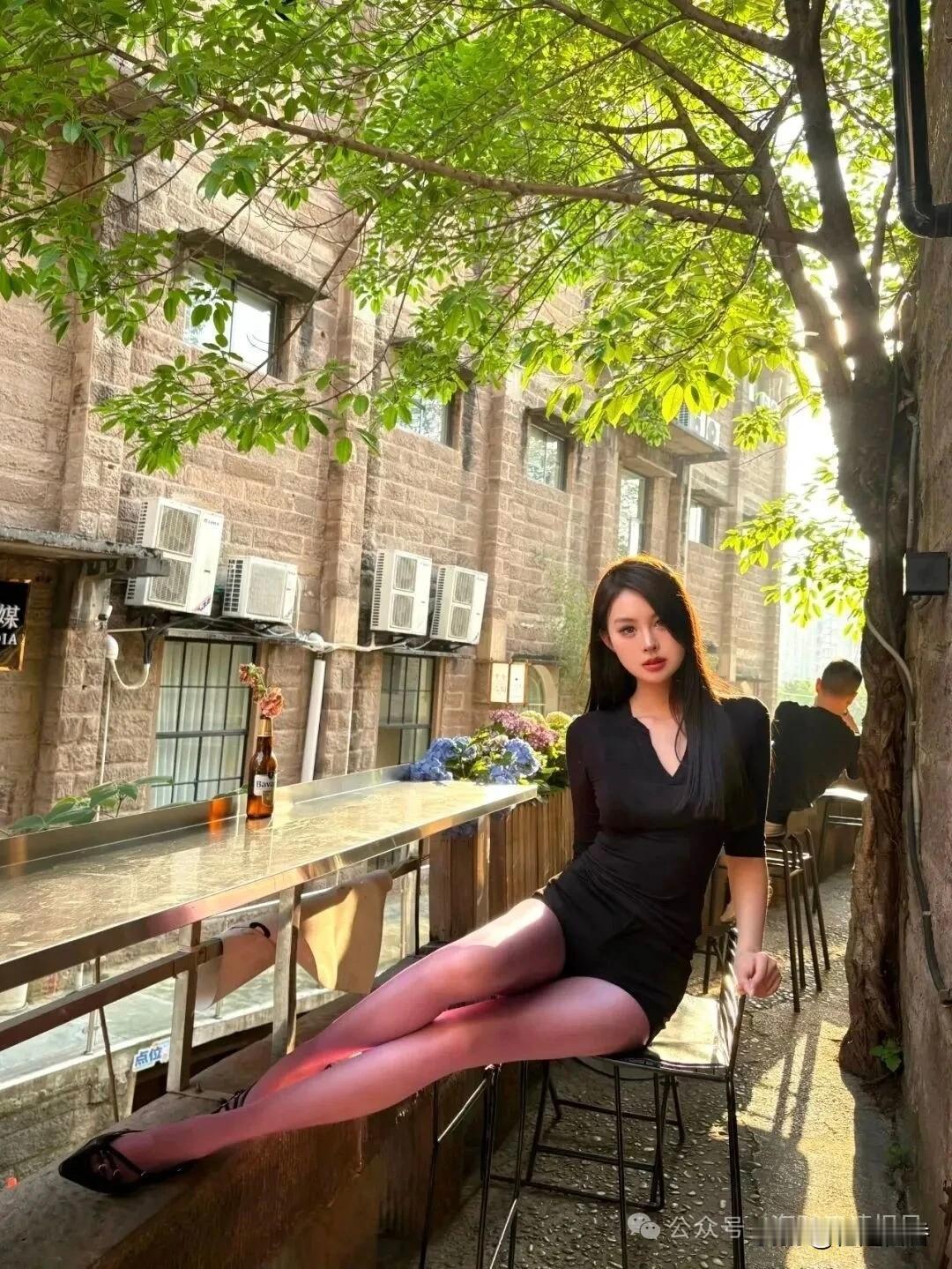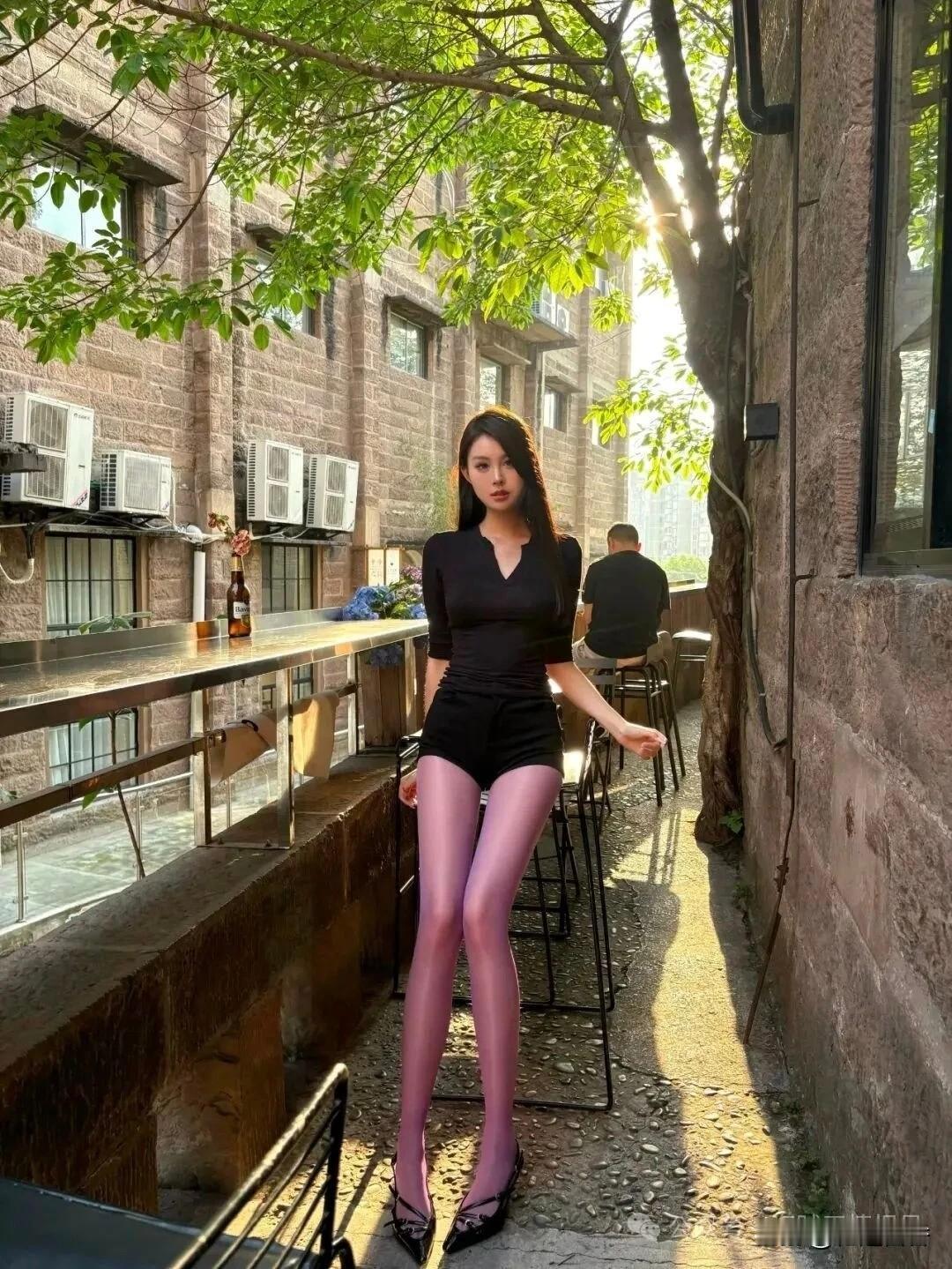 都市街头,时尚少女倚栏沉思,光影交错,尽显优雅与神秘。