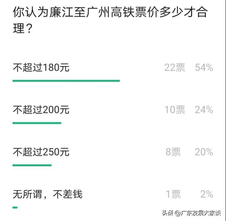 湛江(廉江)至广州的高铁票价定在多少才算合理呢?广湛高铁即将通车,湛江到广州的预计票价超 300 元。虽说最终票价尚未公布,但大致也能猜到。 湛江到广州要 300 元,廉江出发的话,估计得在湛江票价基础上再加 30 元。目前廉江高铁正在建设中,预计 2028 年通车。廉江高铁通车后,到广州可能要 300 多元。大家觉得这个价格能否接受呢? 这得看情况。多花钱能提高出行效率,廉江坐高铁两小时就能到广州,票价 300 多块。而坐大巴要五六个小时,票价大概 120 元左右,大家觉得哪个更合理呢? 广湛江高铁 合湛高铁站 佛山广湛高铁 广东高铁 广州至湛江高铁 广深线高铁 合湛高铁招标