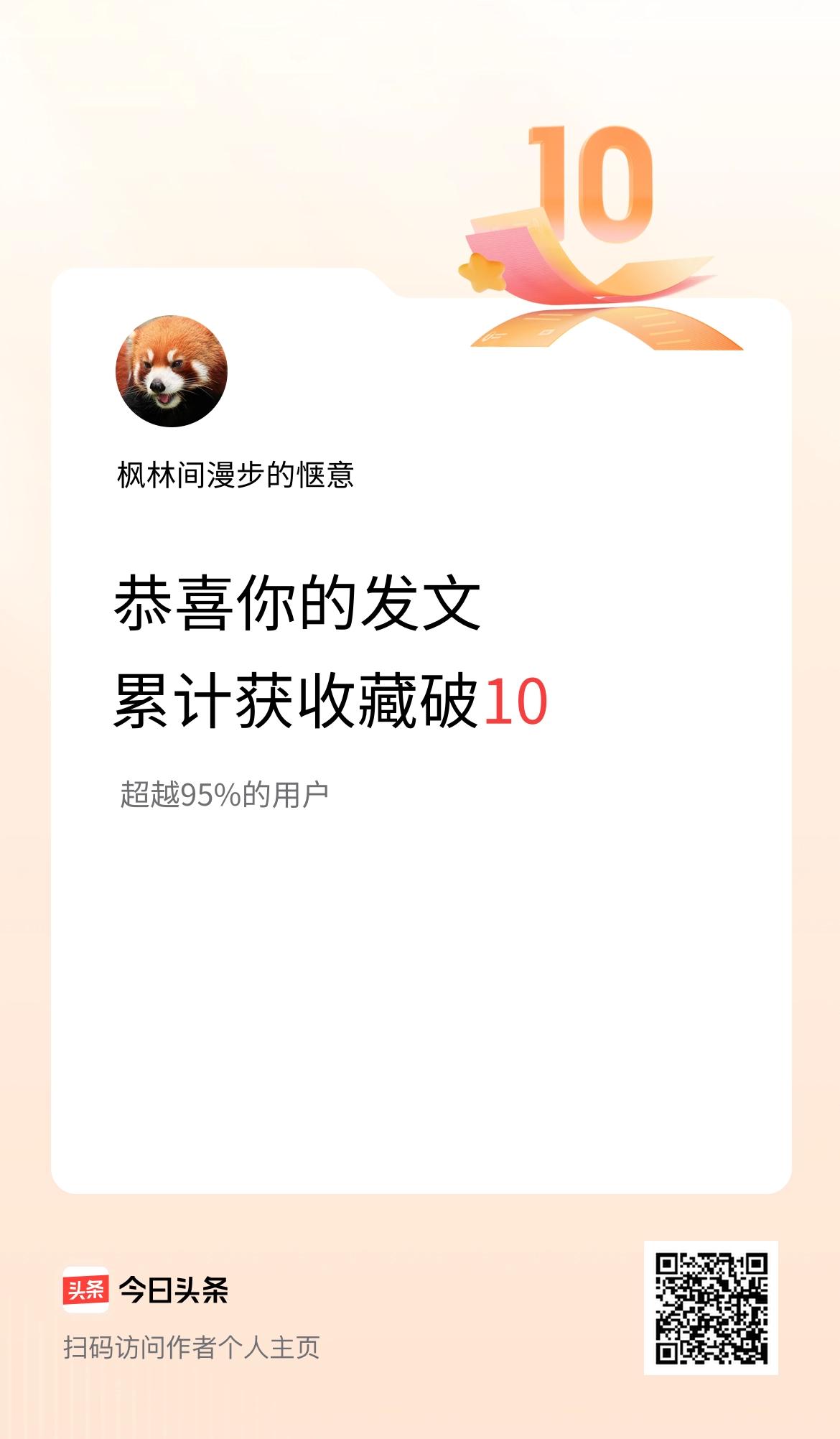 我在头条累计获收藏量破10啦!