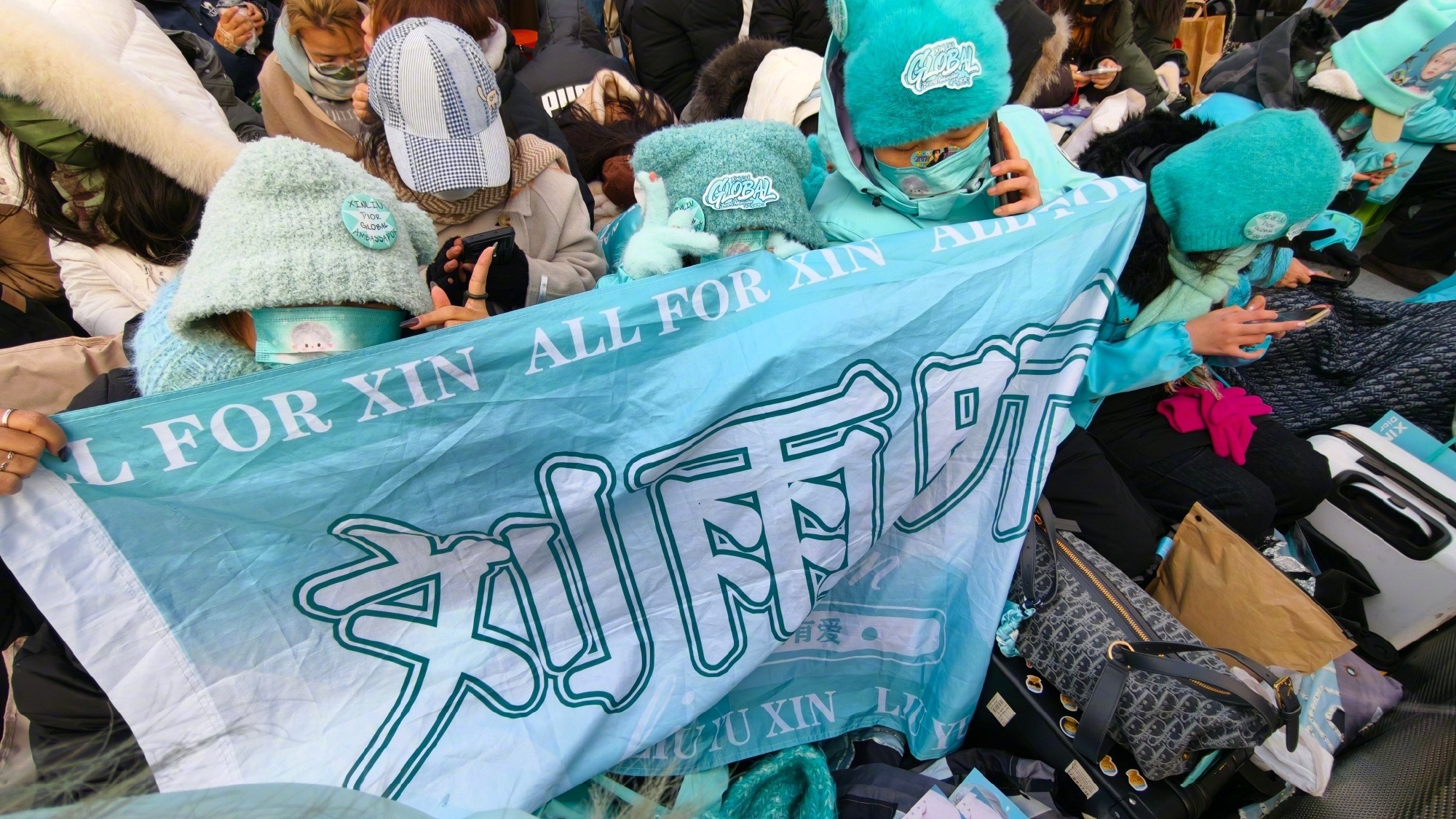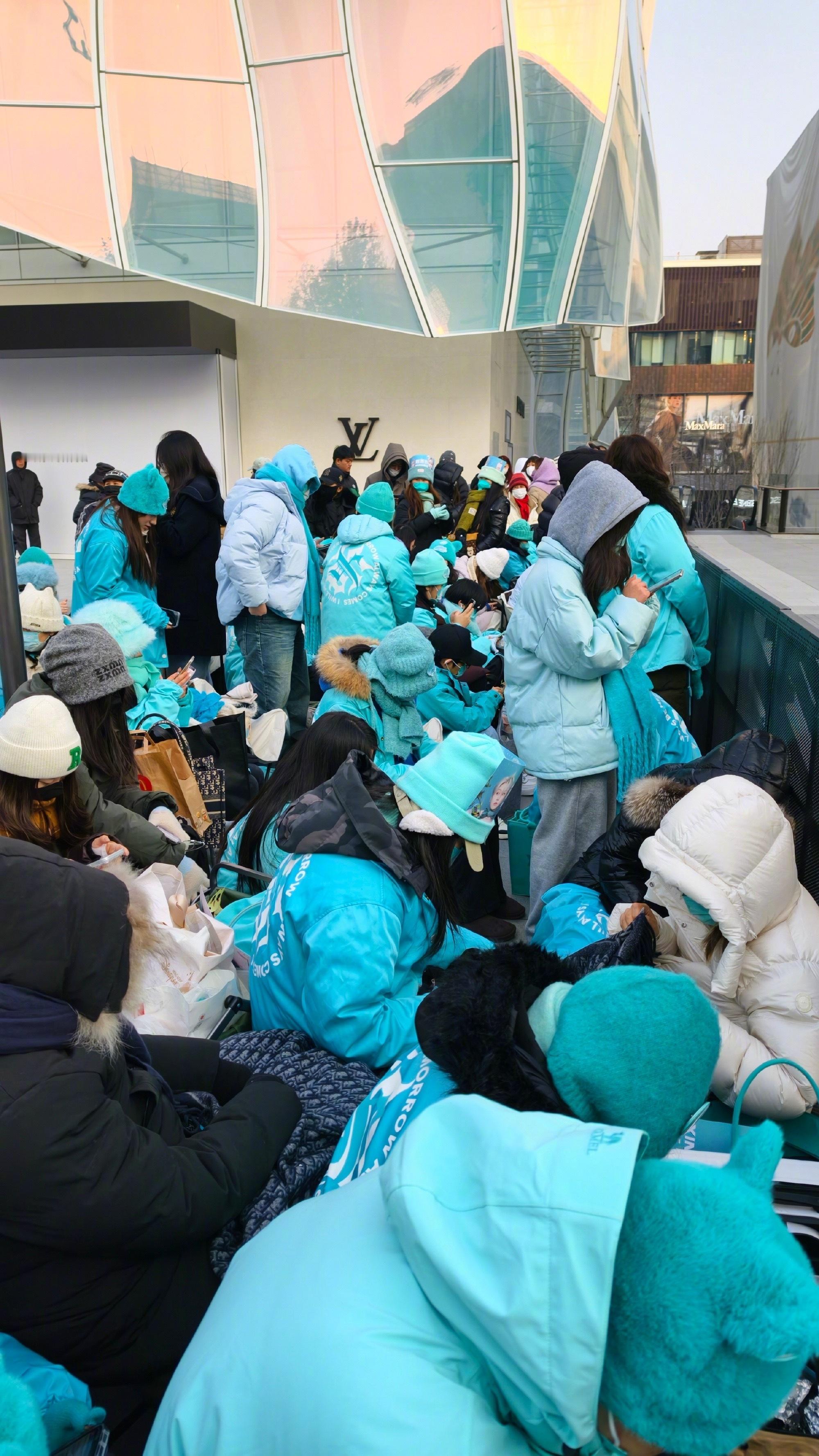邓为北京dior活动人气 一大早钻石们就穿着紫色衣服拿着应援物来等候啦,燥候今天