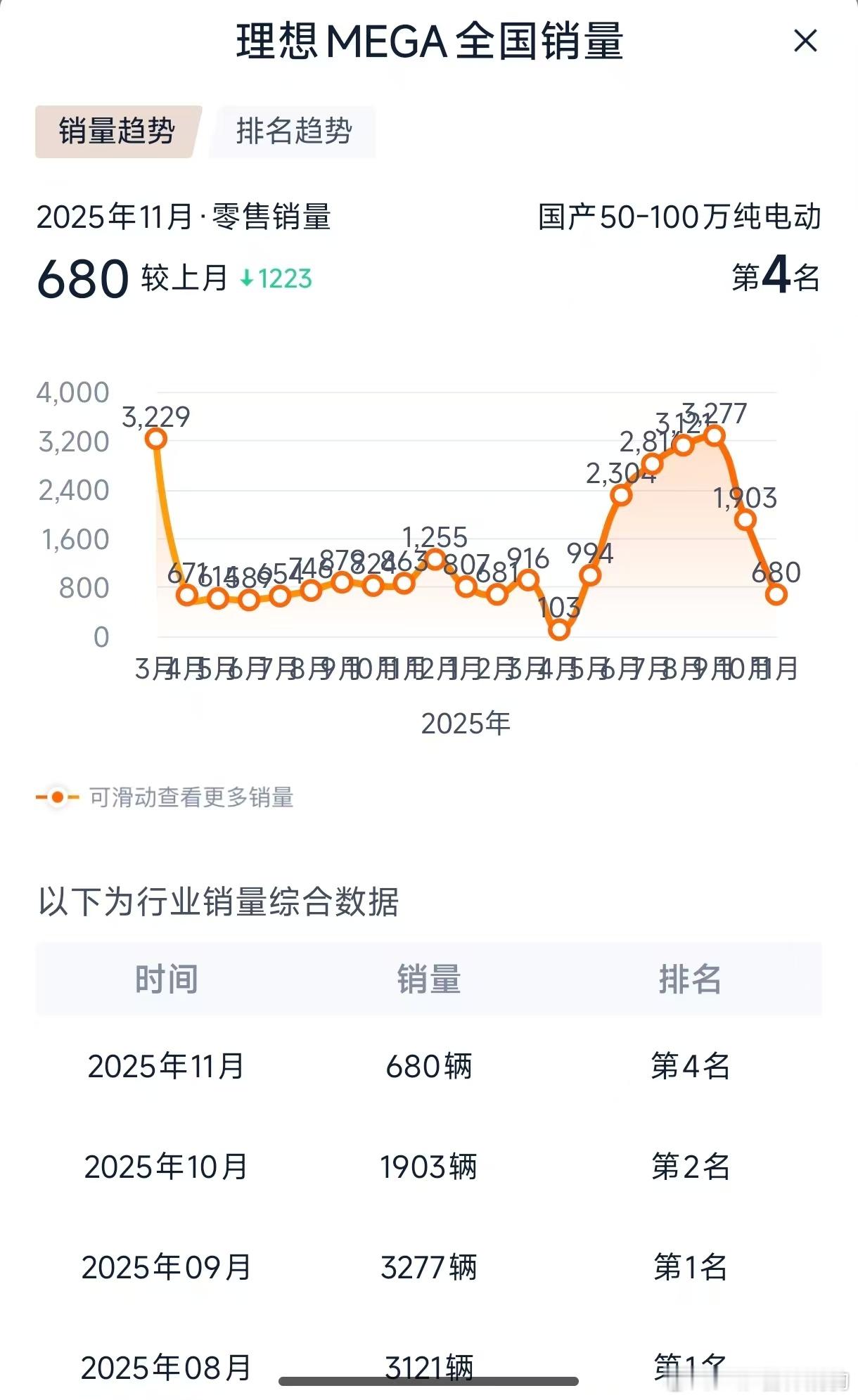 最近看到很多人在讨论理想mega的销量的断崖式下跌(9月的3327➡️11月的