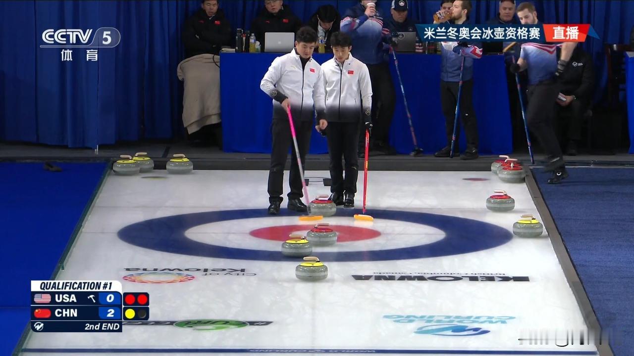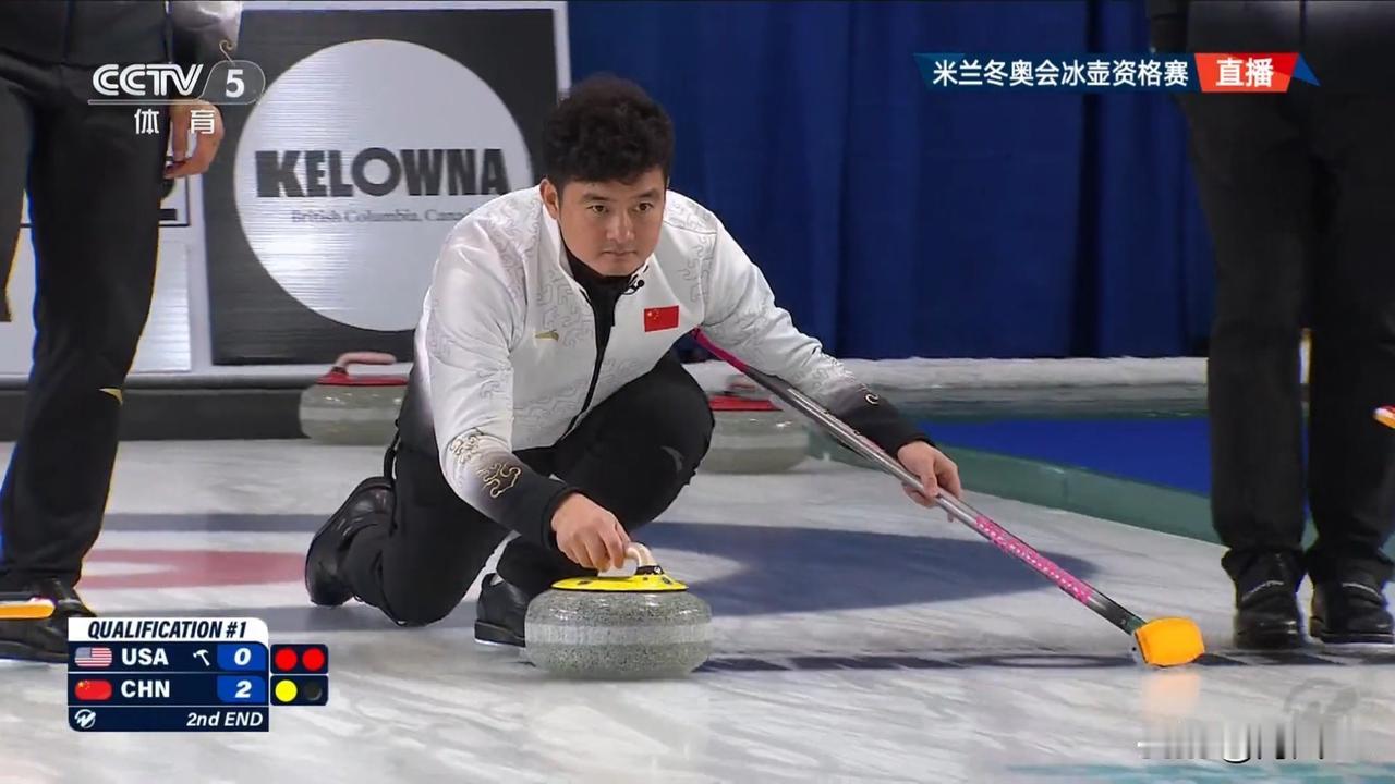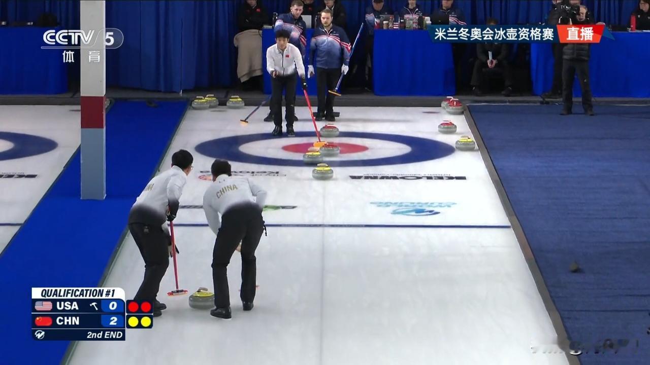 直播中米兰冬奥会冰壶球资格赛 在单循环的比赛中,中国男子冰壶球队六胜一负的成绩取得第一,美国第二。根据规则中国美国争夺直接出线权,胜者直接进入米兰冬奥会资格,负者和日本队争夺另外一个出线权。 中美之战正在进行中,前两局中国男子冰壶球队2:1暂时领先,第三局后手。