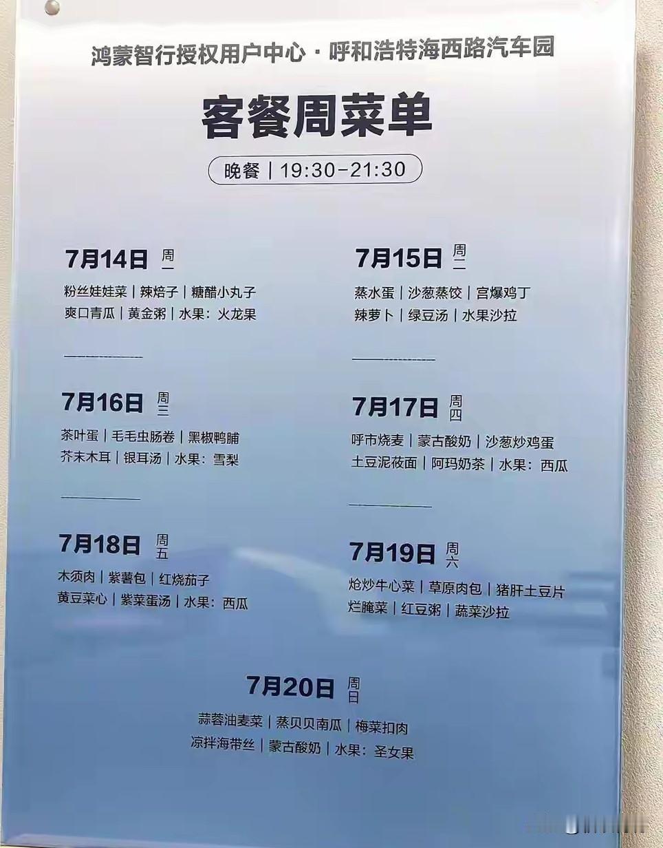 免费又丰富!话说鸿蒙智行这餐饮配置真是可以啊! 鸿蒙智行的车主们,大家都体验过鸿蒙大酒店的夜宵没?看这配置,妥妥的中式套餐规格配置,四菜一汤一水果,荤素搭配,关键是还免费。 不管成本贵不贵,但这政策明显是把客户摆到了尊贵的位置,能买鸿蒙智行的车主,估计也不会单纯去为了吃这免费的餐饮而去,但去维修保养车辆的时候,顺便能享受到这样的款待,心情估计马上就不一样了。 你感觉鸿蒙智行大酒店这套餐怎么样?