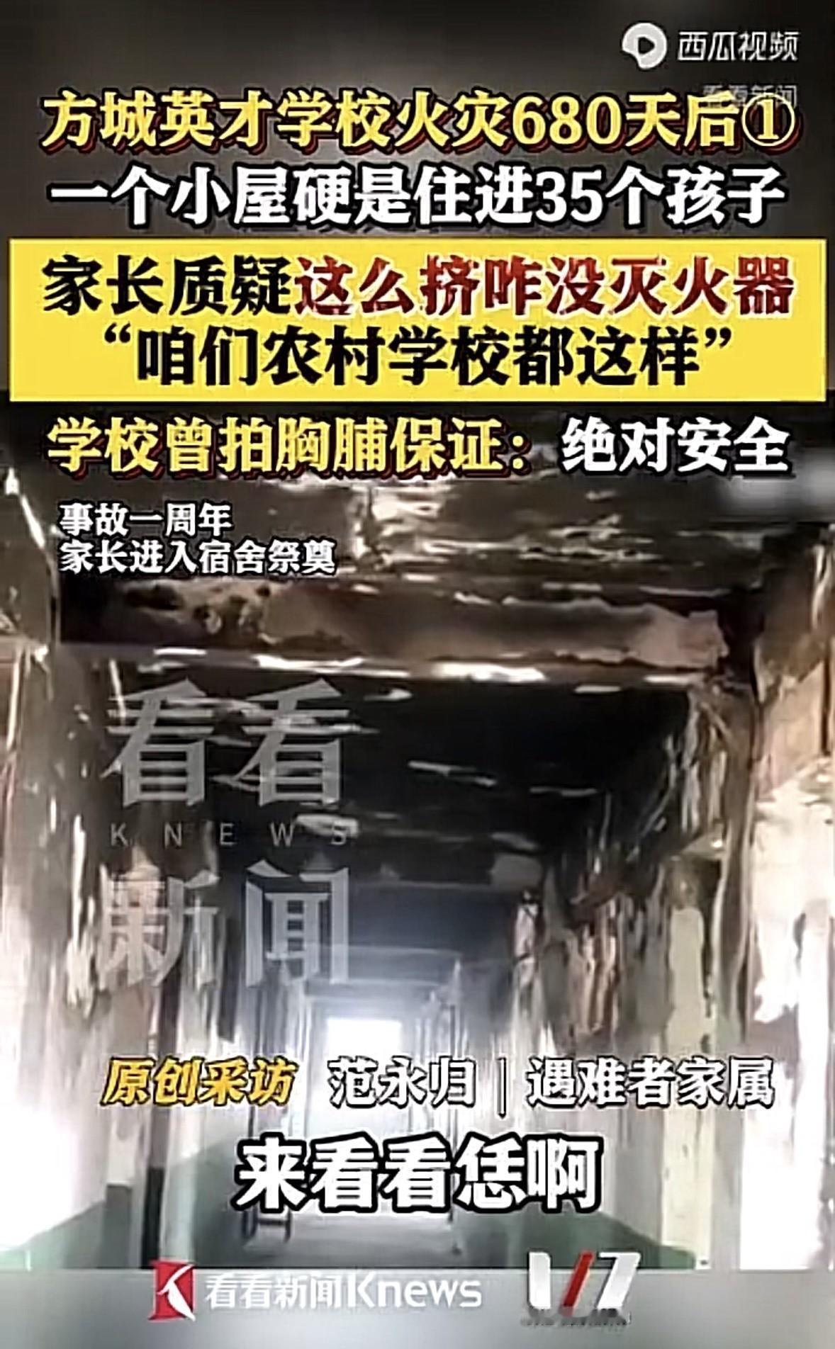 河南南阳,男子在外打工时接到消息,他儿子住校时遭遇大火,遇难了,男子连夜赶回,刚下飞机就被自称安抚小组的人带到一宾馆,让他先签一份赔偿协议,不签就见不到孩子,协议要求,男子拿到赔偿款后就不能找学校麻烦,也不能往外说,否则要担责,不尽快签赔偿金还会降低,男子为了见孩子最后一面,只好签了。 2024年1月19日深夜,那所专门接收农村寄宿生的民办学校里,35个孩子挤在不足20平米的宿舍,铁架床几乎贴着墙,空气中弥漫着汗味与肥皂的混合气息——谁也没料到,浓烟会从走廊窜进窗户,将13条幼小的生命困在睡梦中。 范永归后来总想起开学时的争吵。有家长指着墙角空荡荡的灭火器箱问“这咋是空的”,校长拍着胸脯用方言说“农村学校都这样,安全得很”,那时的憨厚笑容,如今在记忆里却像淬了冰的嘲讽。 接到儿子遇难电话时,范永归正在外地工地绑钢筋。他连夜买了最早的机票,机舱灯光映着他布满血丝的眼,脑子里全是儿子上次视频时说的“爸爸我床底下有蟑螂”——原来拥挤的宿舍不仅藏着蟑螂,还藏着致命的火患。 签下赔偿协议那天,范永归的手抖得握不住笔。“不签就见不到孩子最后一面”,安抚小组的话像鞭子抽着他,消毒水味的宾馆房间里,协议上“不得上访”的条款刺得他眼睛疼。他只想抱抱儿子冰冷的身体,却没意识到,那些用生命换来的“封口费”,在法律面前根本站不住脚。 《民法典》第506条像一把钥匙,打开了范永归的疑惑:合同里“免除人身损害责任”的条款本身就是无效的。就像你不能用一张纸买断人命,学校超员、无消防设施的过错,早已越过了“合同自治”的边界——这不是简单的赔偿,是对13个家庭的侵权。 有人说“农村学校条件差难免”,可隔壁乡的寄宿制学校,每个宿舍不超过8人,灭火器每月检查,消防演练月月不落——安全从来不是“农村”的反义词,是责任有没有装在心里。 范永归在网上发帖的夜晚,台灯亮到凌晨三点。他敲下“我儿子没了,但真相不能没”,屏幕映着他布满血丝的眼。记者去当地采访时,校门口保安拦着说“领导不在”,教育局电话永远是“调查进行中”,可他知道,那些被敷衍的家长需要一个不被“协议”掩盖的答案。 现在的范永归,手机里还存着儿子去年生日的照片,穿着洗得发白的校服,举着皱巴巴的奖状笑。他说“我不是要多少钱”,手指划过照片上孩子的笑脸,“我要他们知道,每个孩子的命,都比协议上的墨水金贵”。 事故发生半年后,他依然在等结果。常常坐在儿子的书桌前,看着空荡荡的书包发呆——那里曾装着课本、橡皮,和一个9岁孩子对未来的所有想象。而现在,他要替儿子把这份想象,变成沉甸甸的真相。