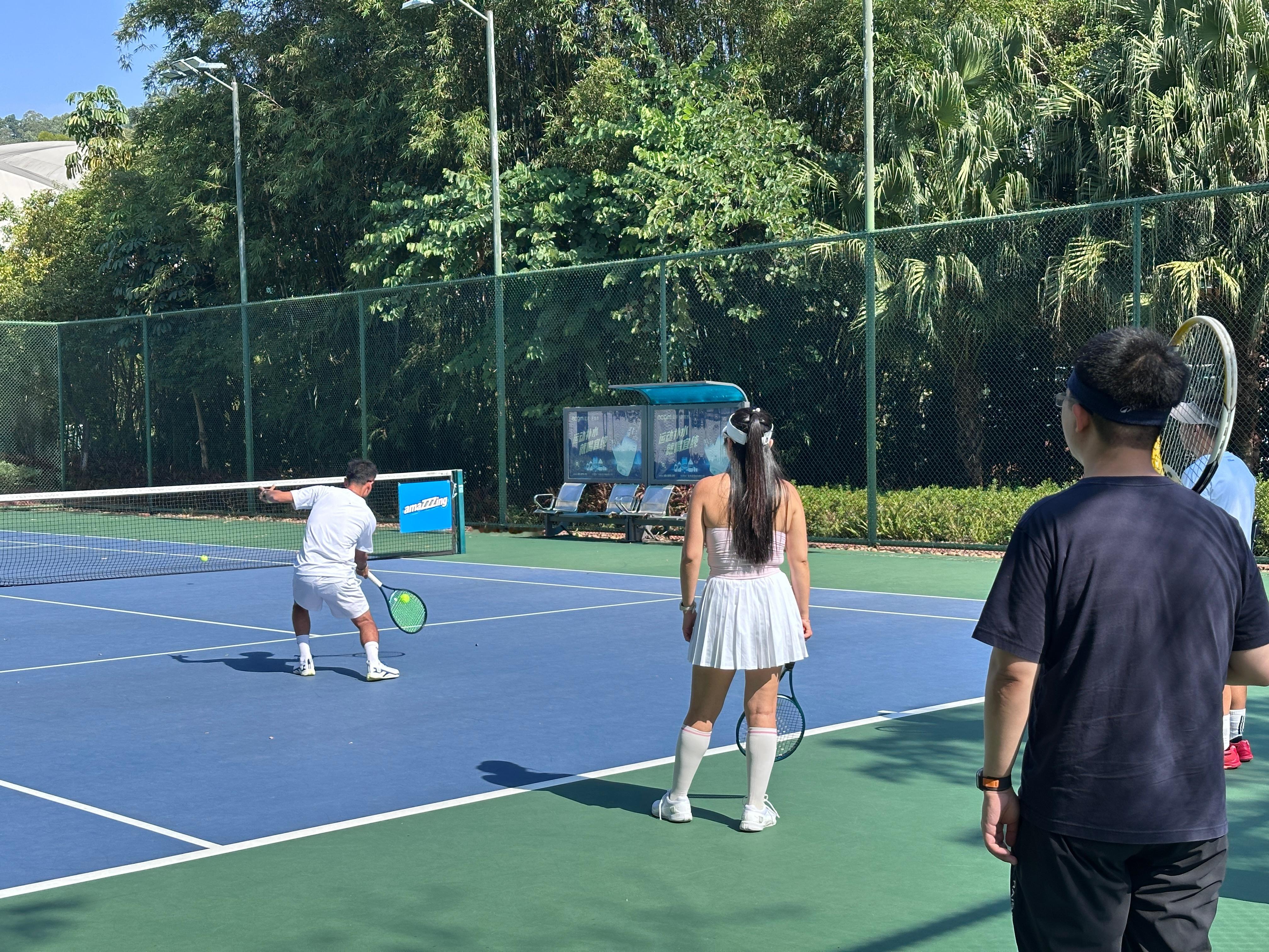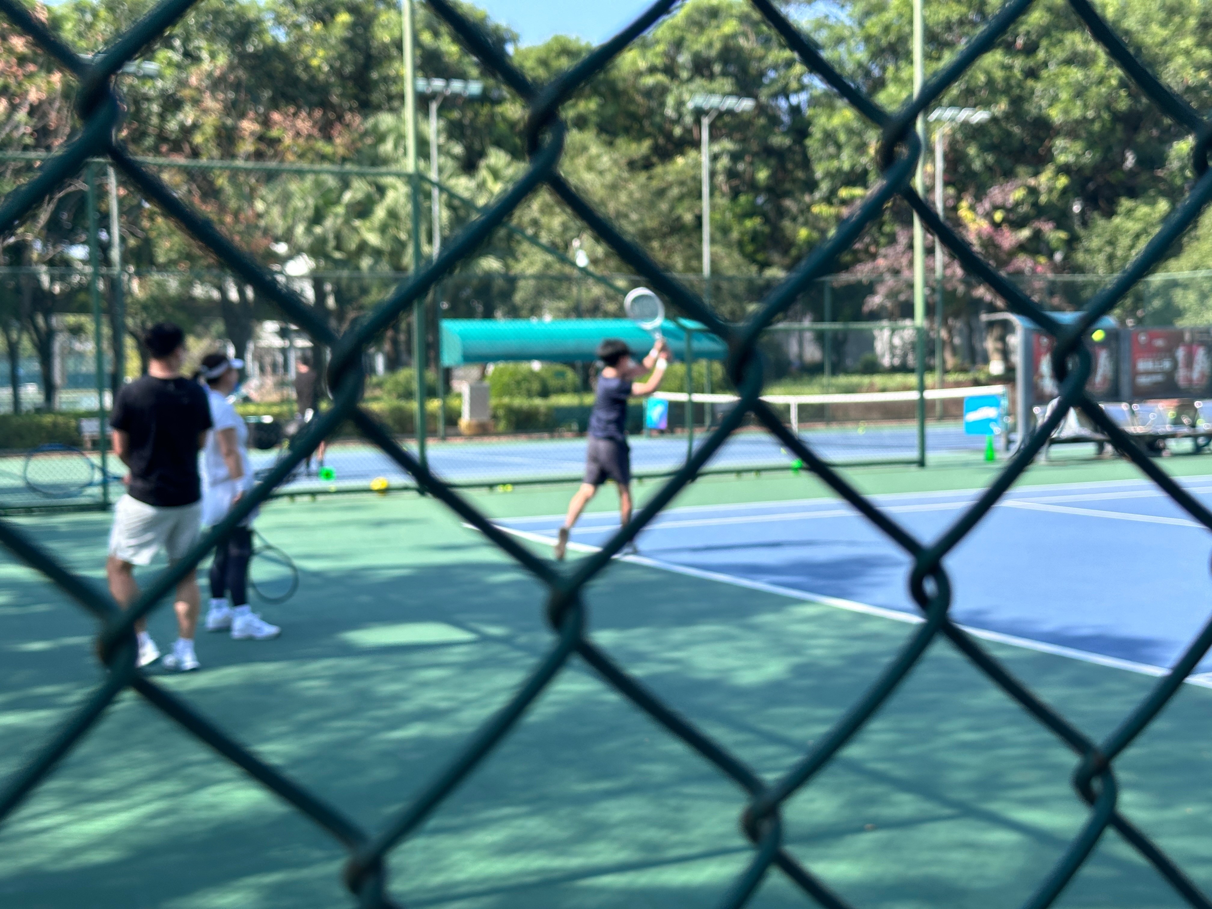 从冬天的上海来到12月的东莞,真是太舒服了。昨天的紧身长袖真是闷了我一身汗,今天回归短袖+外套的组合,穿脱方便。为什么这两件衣服上都有Paris和75的字样呢? 因为这是去年巴黎奥运会系列,巴黎是法国的第75省嘛!很多人看到品牌中的SWISS,觉得K家应该是个欧洲品牌,其实是美国品牌。不过确实是两位来自瑞士的创始人在加州创建的,加利福尼亚的德文是Kalifornia,就当做了品牌的首字母。但不管是瑞士创始人还是美国品牌,反正如今都归了国货品牌大家有试过连续四天打网球吗?训练营到了第四天,我感觉有些球员已经现出了疲态冬训就是要搞大运动量哦,听说张之臻下午要来给营员们打气了! 东莞·东莞市网球中心