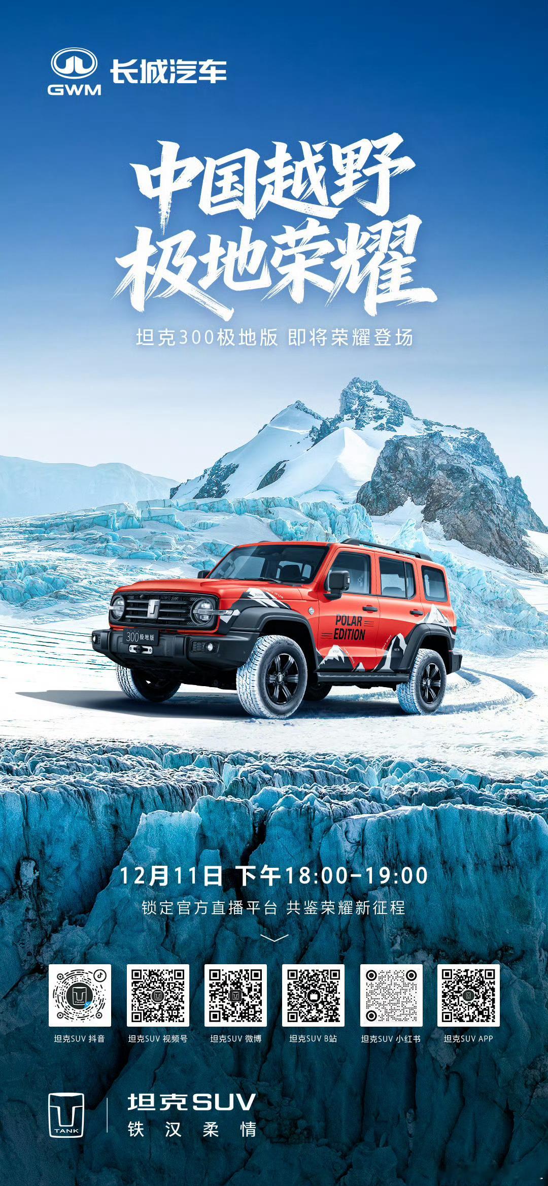 不知不觉,坦克已经成立五年了。五年对于汽车品牌来说,非常年轻。比蔚小理都要年轻的多。但是坦克往往又不被归为新势力。五年的时间,坦克300这一款车就卖了50万台。其中有我一台柴油版。而今天下午发布了这个极地版,其实也是以柴油版为原型。我一直都希望坦克能多推出一些个性化的共创版、限量版的车型。比如我就想要可拆卸车顶,无边框车门。