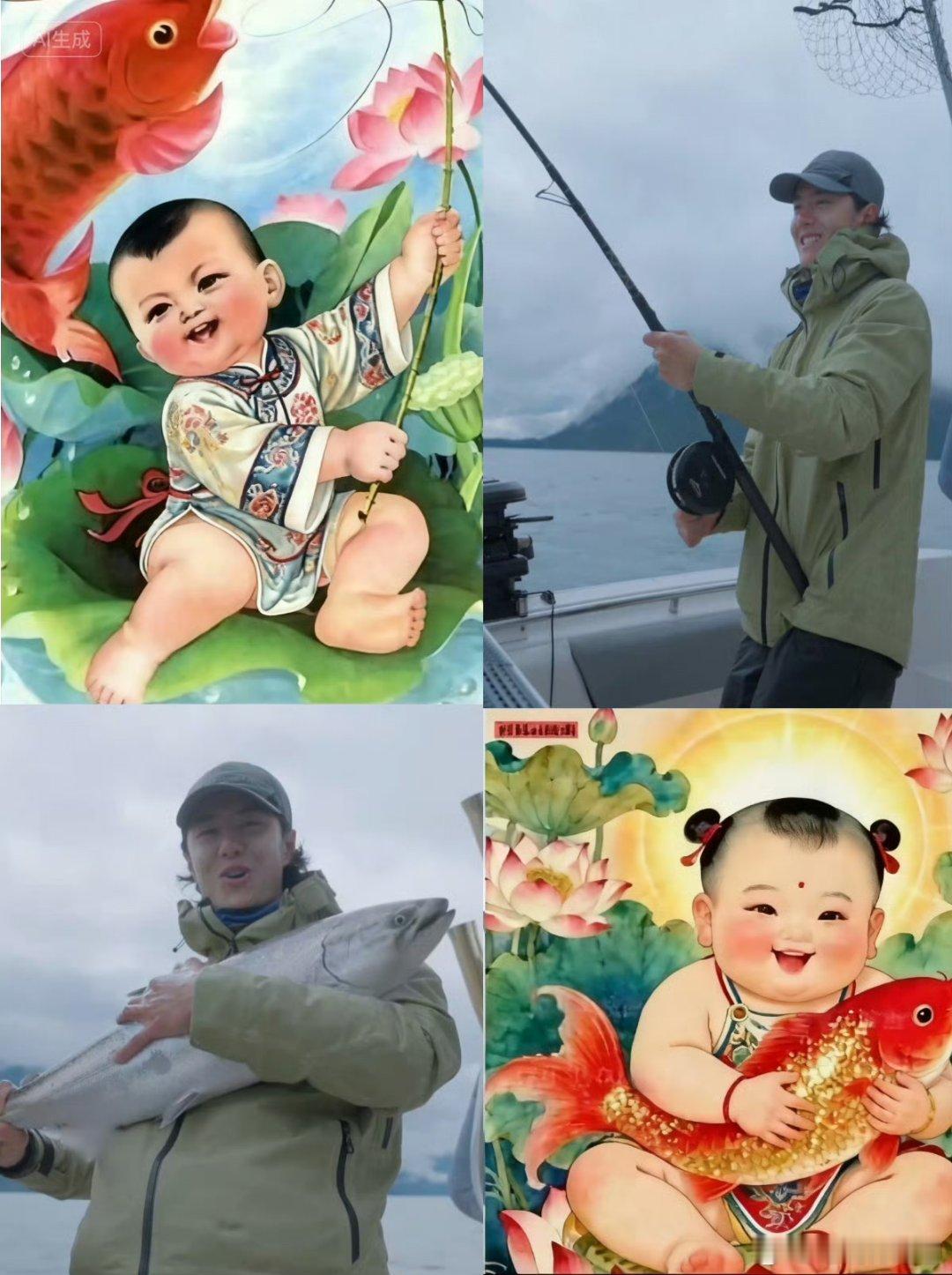 王一博抱鱼好像年画娃娃奏稀罕这种长得喜庆的娃