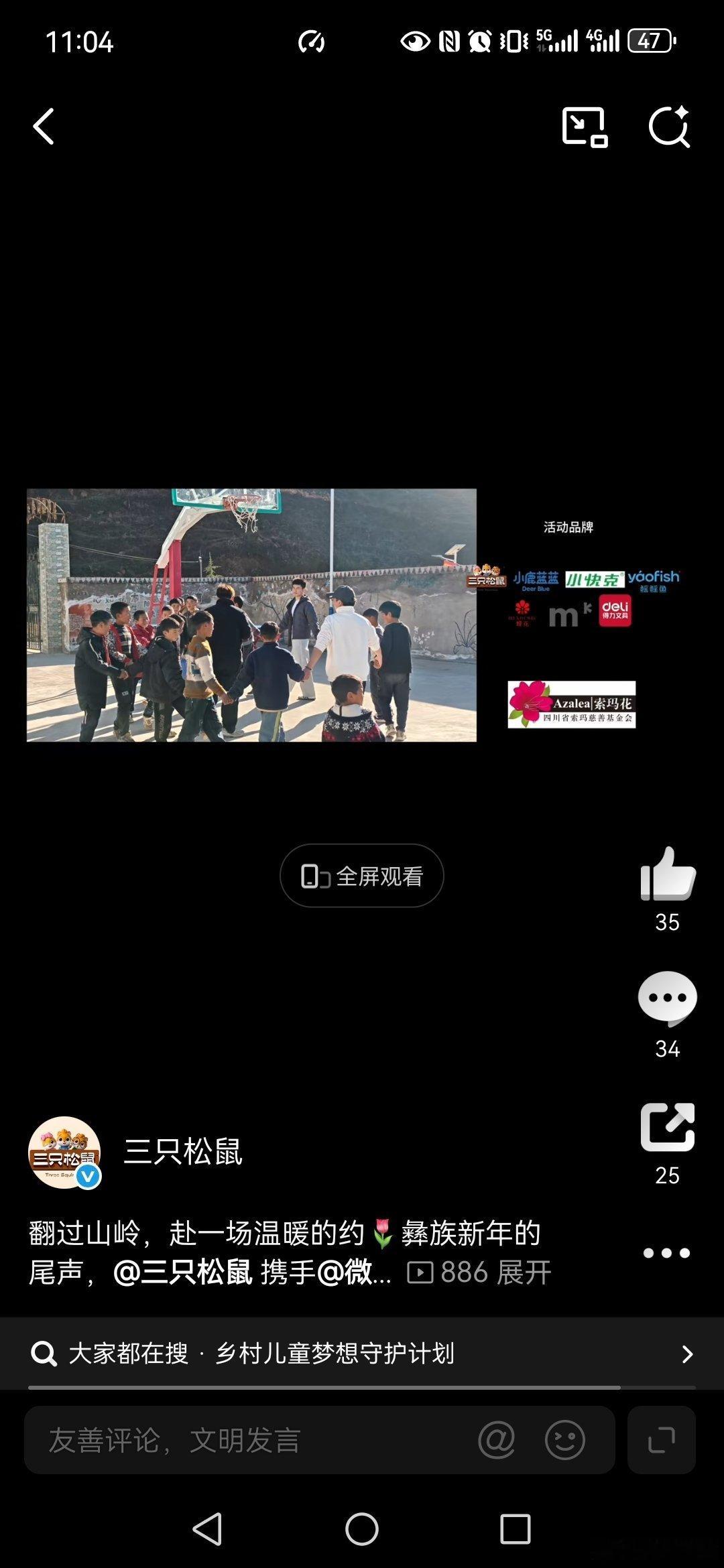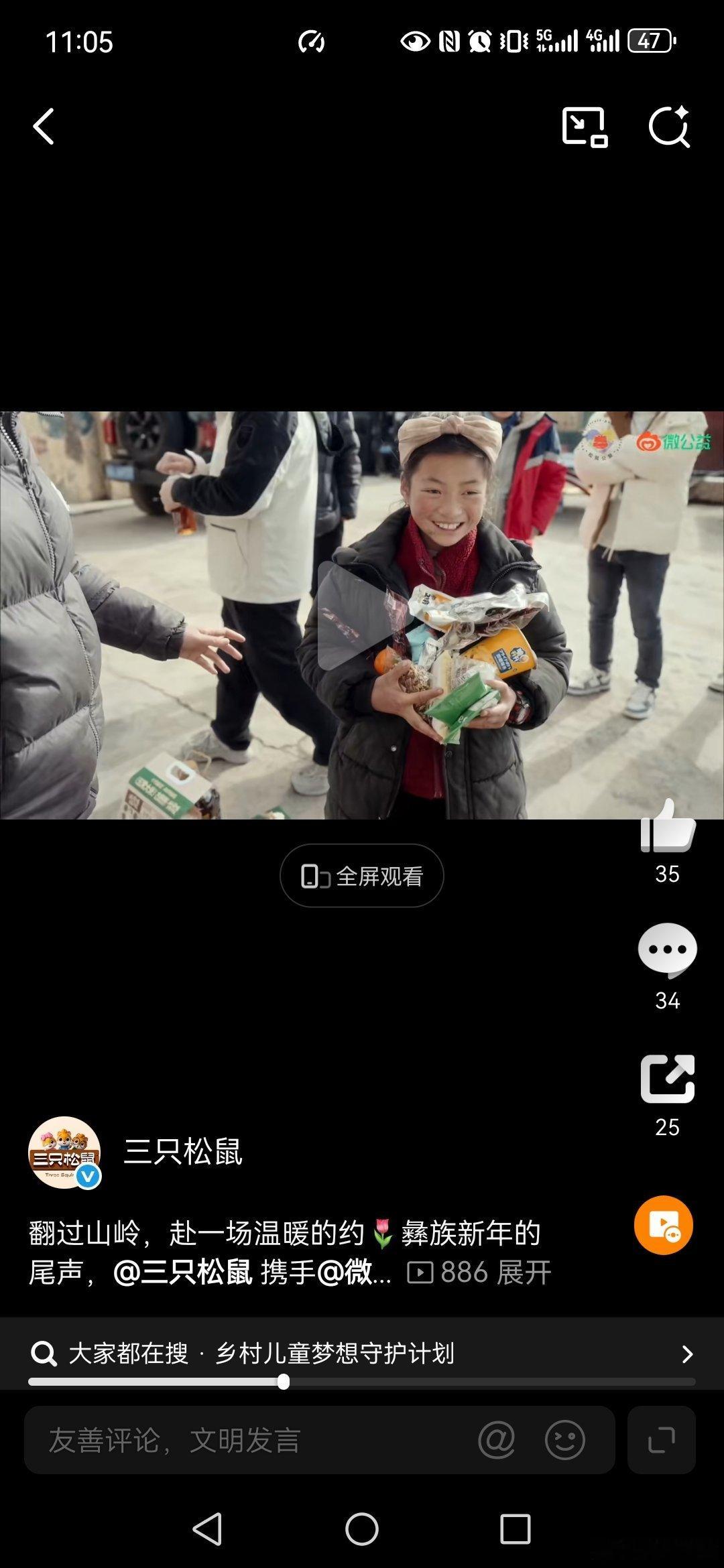 乡村儿童梦想守护计划 捐赠公益项目,看了视频,孩子们接收到了三只松鼠的捐赠后,幸福的笑容,灿烂的微笑。 三只松鼠“乡村儿童梦想守护计划”是从精神,物质,可持续发展等方面进行的公益活动。一是物质支持大,资源投入多,2023年起,三只松鼠按月为四川凉山等偏远地区学校捐赠爱心物资,赠送包括了零食礼包、文具等。二是精神关怀与梦想激励效果好,三只松鼠通过拍摄公益短片(如《山里的他们》《不屈的种子》),让更多的人关注乡村孩子们的梦想和乡村教育。三是三只松鼠活动多,比如发起微博话题活动,邀请网友参与祝福征集、分享支教故事作为梦想守护者三只松鼠坚持定期捐赠。社会影响力大,