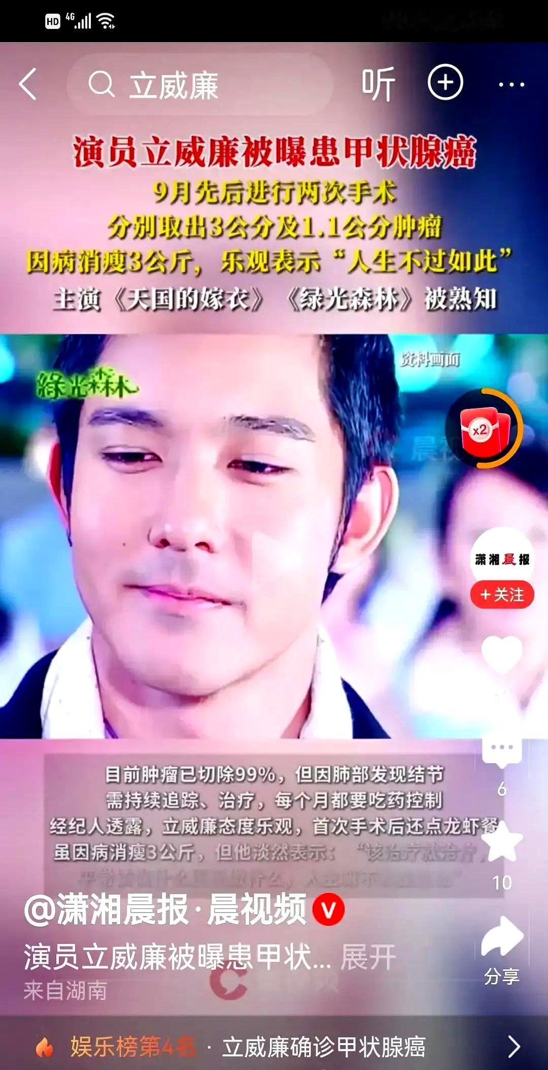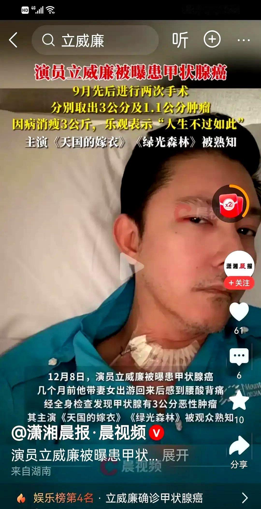嗓子哑了俩礼拜,你以为只是上火? 偶像剧男神立威廉就是这样。 2023年初嗓音嘶哑、脖子肿,一查竟是甲状腺癌早期。 还好发现得早,48小时内就完成了手术,病理显示没转移,人没事儿。 别觉得这事儿离自己远。 国内一年新增20多万例,女性发病率是男性的3倍,尤其是30-50岁的姐妹们,得注意了得注意了。 虽然最常见的乳头状癌十年生存率超90%,但早期治疗花个两三万,拖到晚期费用要翻10倍。 体检的B超真不是白做的,能查出2毫米的结节。 查出结节也别自己吓自己,95%都是良性的,听医生的话定期复查就行。 记住一个关键点:如果声音持续嘶哑超过两周,或者脖子摸到肿块、吞咽困难。 赶紧去看看。 自己的健康档案自己存好,设个复查提醒,这事儿真不麻烦。