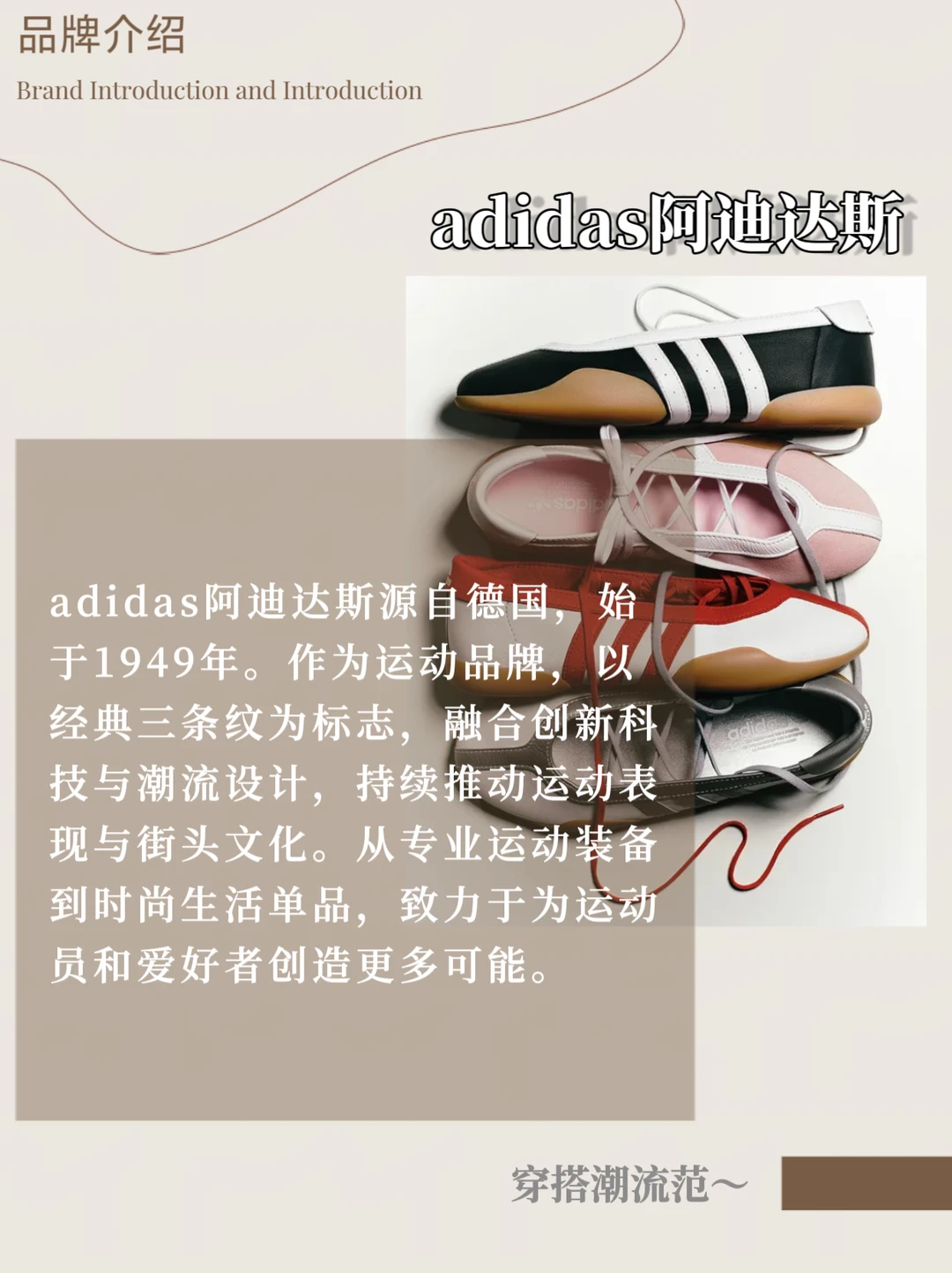 adidas阿迪达斯源自德国,始于1949年。作为运动品牌,以经典三条纹为标志,融合创新科技与潮流设计,持续推动运动表现与街头文化。从专业运动装备到时尚生活单品,致力于为运动员和爱好者创造更多可能。