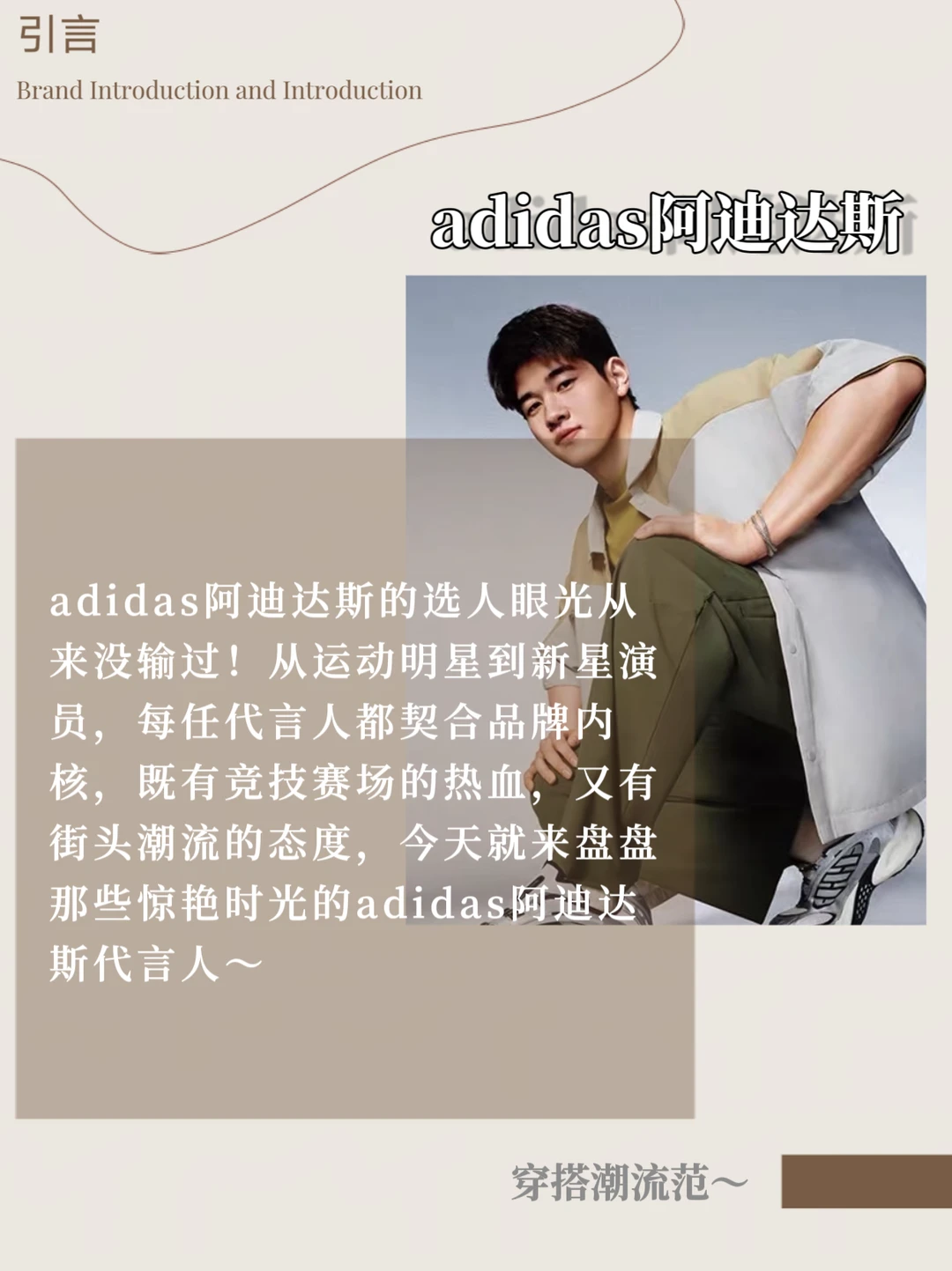 adidas阿迪达斯的选人眼光从来没输过!从运动明星到新星演员,每任代言人都契合品牌内核,既有竞技赛场的热血,又有街头潮流的态度,今天就来盘盘那些惊艳时光的adidas阿迪达斯代言人~