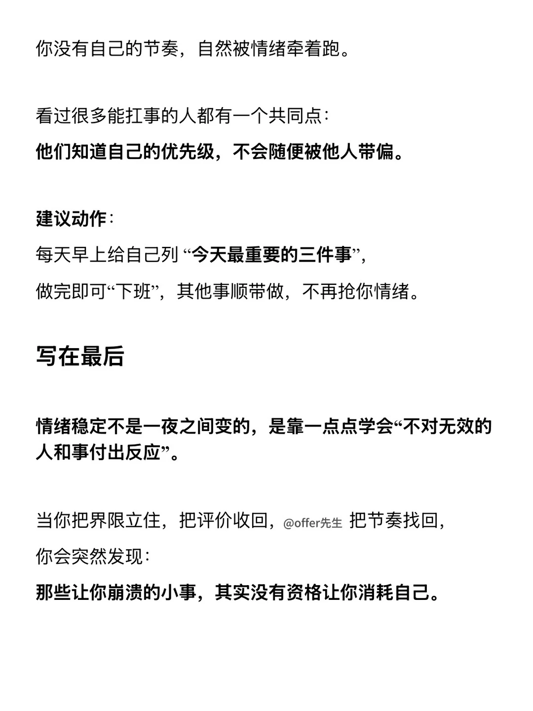 情绪稳定,不是你天生性格好,而是你后来学会留力。 真正稳的人,从来不是没情绪,只是知道什么时候不值得消耗自己。 ... 一个认真分享“找工作”干货的账号,真诚、有料、不说空话 ·