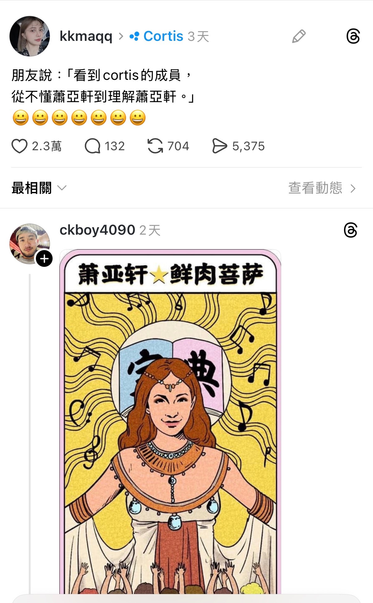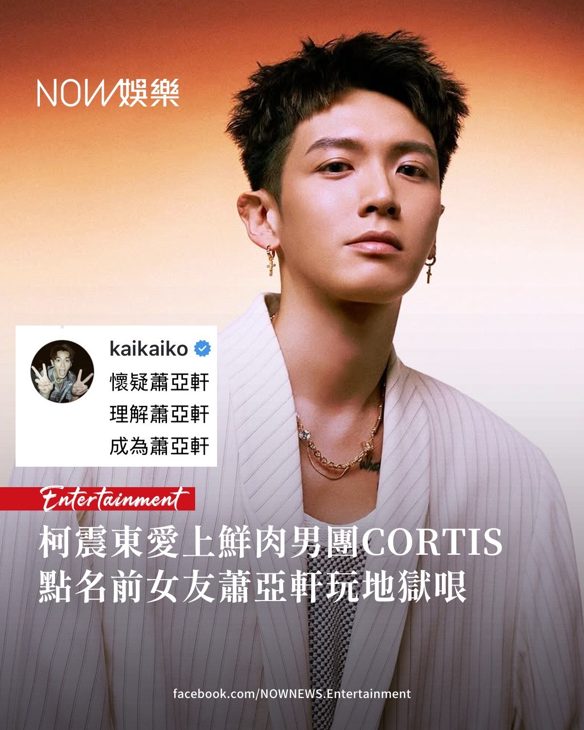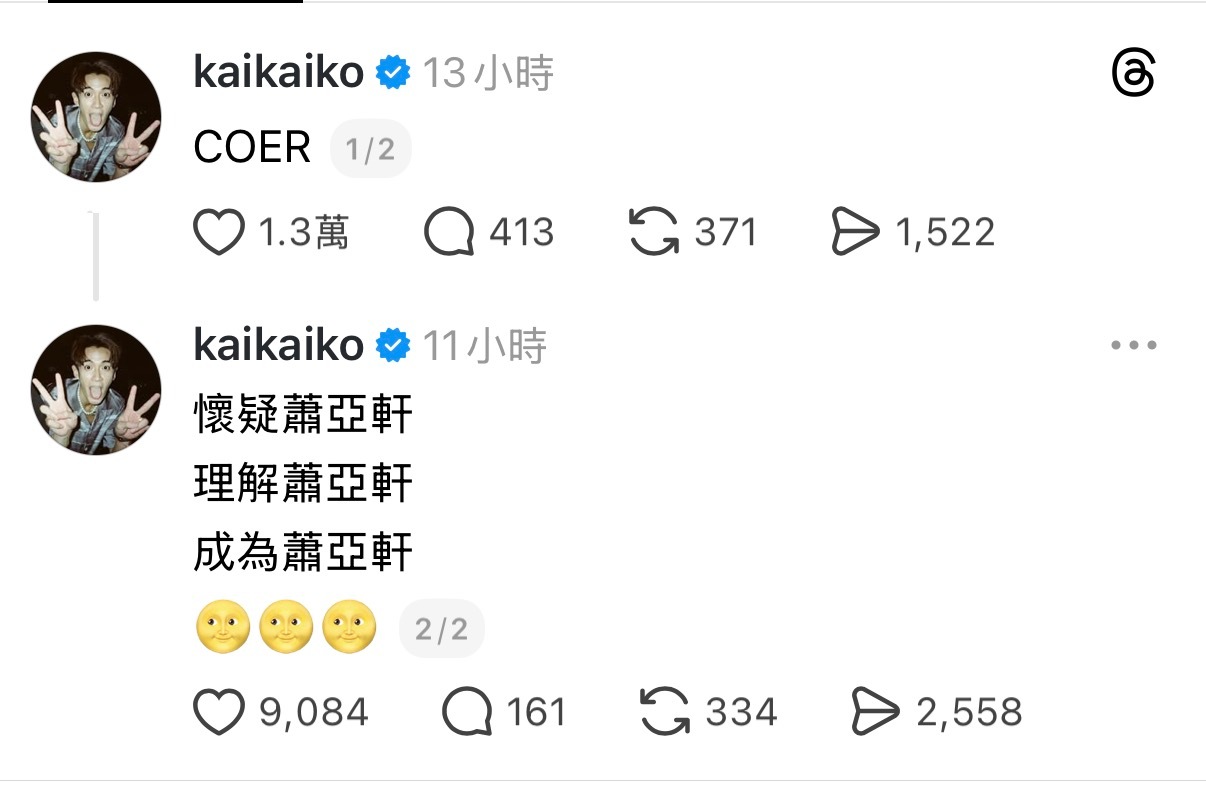 柯震东玩梗也是看了新闻才知道⬇️韩国新世代男团CORTIS才出道近4个月,就收获大票粉丝,官方社群帐号目前已突破734万位粉丝。然而,团内成员年纪在16至20岁,粉丝大多为「姐姐粉」,网路就疯传一句玩笑话:「怀疑萧亚轩、理解萧亚轩、成为萧亚轩」