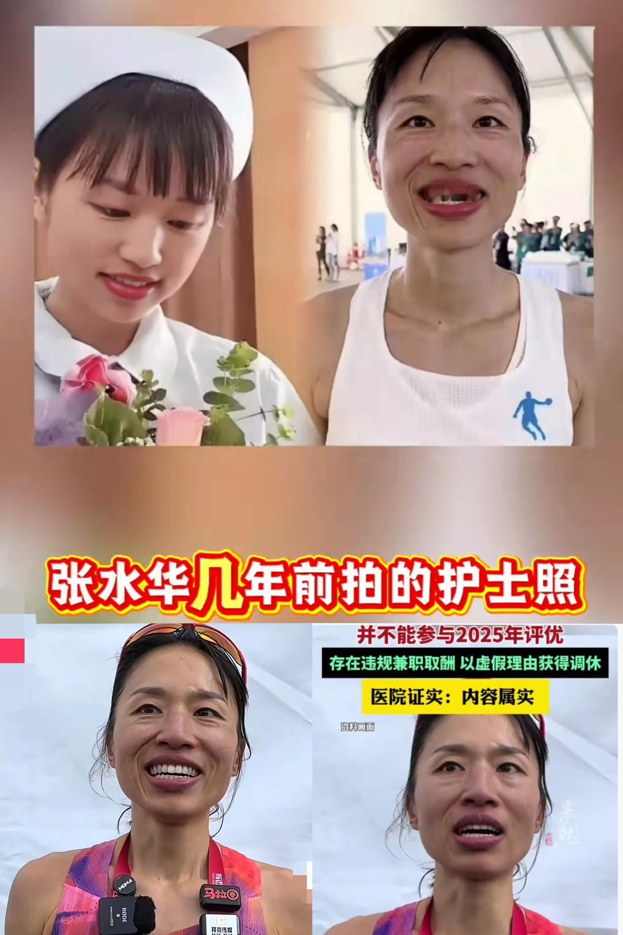 仔细看张水华这张照片, 大家发现一个细节没有, 不是她的嘴巴大,而是她很明显 看这状态也太显老了吧,完全不像同龄女性该有的样子! 不得不说她是真能打,近50天连跑5场马拉松,国内冠军拿不停,可一边是护士夜班熬身体,一边是极限运动透支体能,这双重消耗谁顶得住? 我见过太多跑友盲目崇拜马拉松,却不知这种极端运动对心肺的隐形摧残。体育精神值得敬佩,但当运动变成自我证明的工具时,身体早已亮起红灯。 真正的自律不是征服赛道,而是读懂身体的求救信号。职业特性和极限运动的双重压榨,让多少人在掌声中悄悄磨损生命齿轮? 她跑赢了比赛,可谁来计算她失去的健康筹码?要我说,运动就该像细水长流,而不是狂风暴雨式的自我消耗。 马拉松本就是高强度运动,专家都提醒过度跑会伤关节、累心脏,再加上夜班打乱生物钟,长期下来可不是显老这么简单。 佩服她的毅力,但运动的初衷是健康,不是用身体换成绩啊。你觉得极限运动和日常健康,到底该怎么平衡?