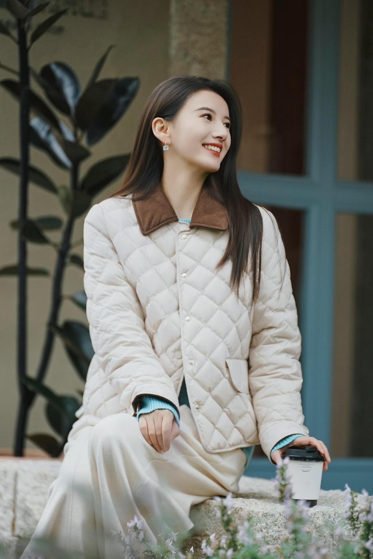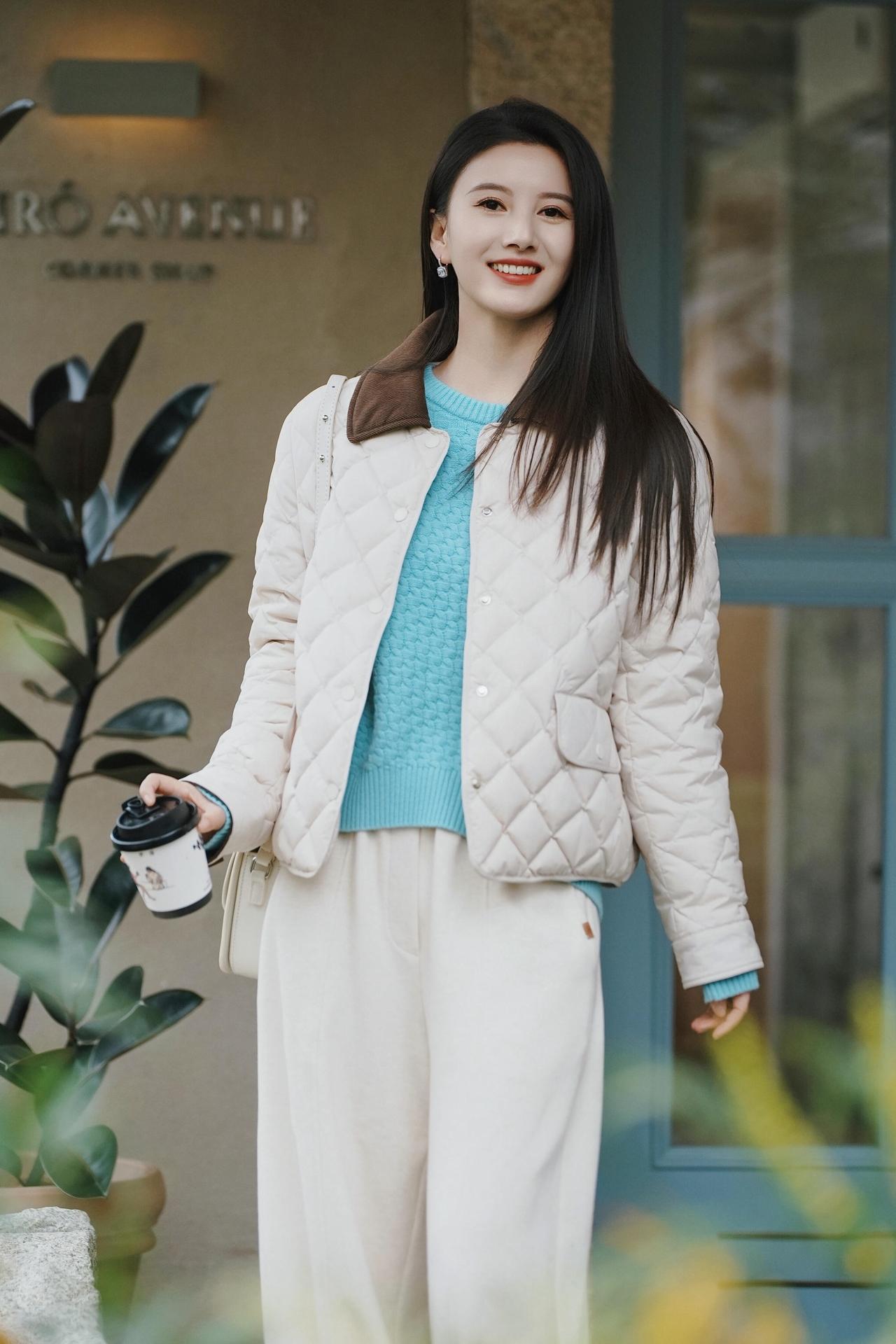 《暖冬轻搭的柔舒感》暖棕底色里,浅米羽绒裹着软蓬的温,像把冬日的暖意揉成了