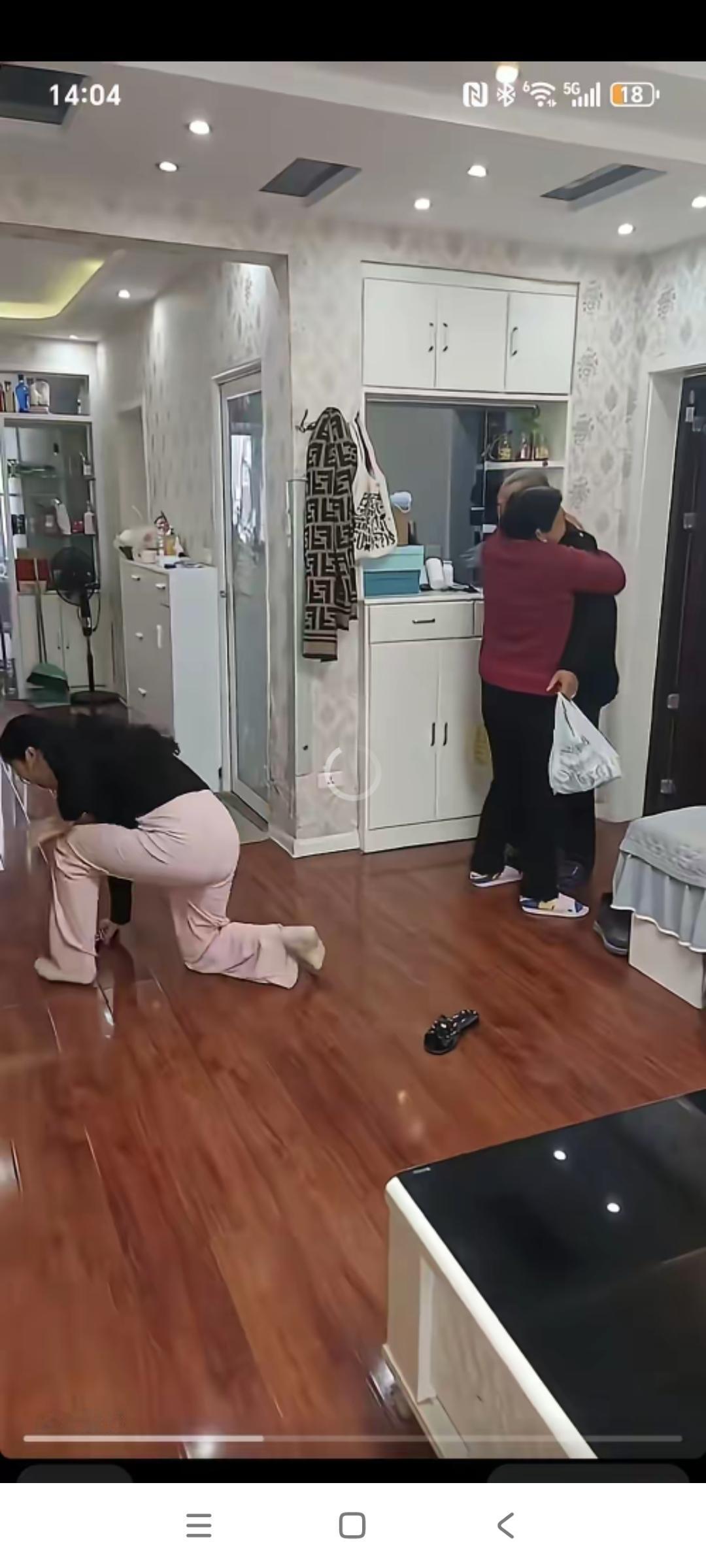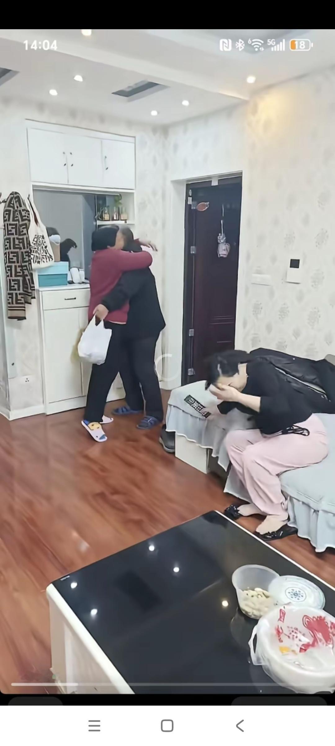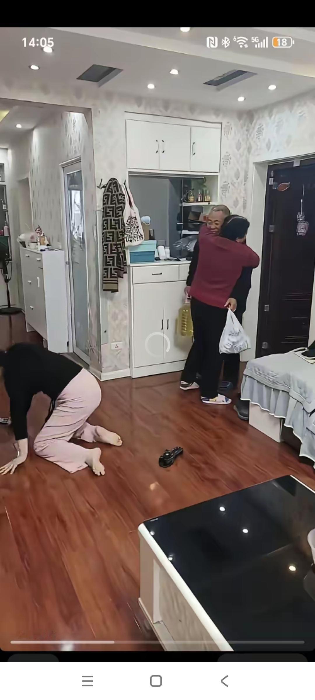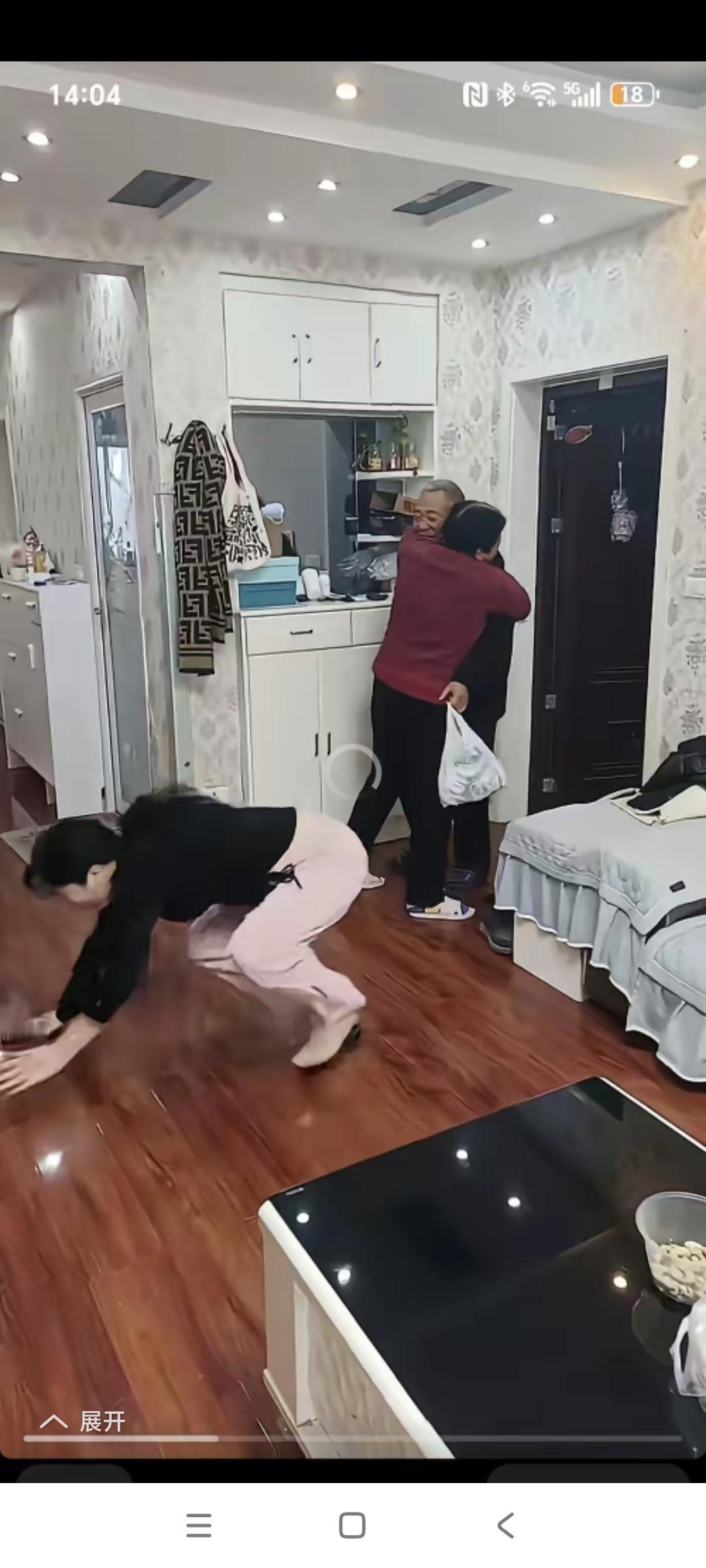 现在这老年人这么开放吗? 没看见那儿媳妇就在床边看着吗? 这门刚打开,老头儿刚进屋儿,老太太就扑上去了。 等老头儿把手里的东西放下,等儿媳妇走了,你们俩怎么搂抱都行啊。 就这么迫不及待吗? 看把那儿尴尬的儿媳妇羞的。 真不忍心看下去了,连滚带爬,全然不顾鞋都掉了,赶紧跑吧。