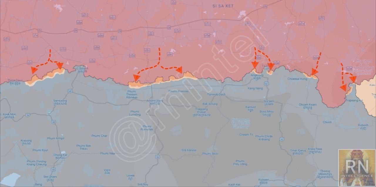 经过72小时的战斗,柬埔寨军队战况太糟糕了,泰国皇家武装部队已在柬埔寨领土上,取得了重大进展,控制了安隆汶边境地区的大部分山脊和战略制高点。泰国军队开始向柬埔寨纵深推进,拒绝柬埔寨当局提出的和谈。目前尚不清楚泰国当局,泰国军方计划占领柬埔寨领土包括多大,而泰国军队的30万大军,前线参战兵力才几万人,泰国军队打消耗战问题不大。而柬埔寨军队10万人,由于缺乏后续火力支援,仅靠人海战术,暂时还不知道会坚持多久。如果战场持续,缺乏火力的柬埔寨军队可能无力进行防御,到时候泰国装甲部队的VT-4,T-84,M-60,“魟”坦克会强势推进。柬埔寨太穷,而且作战思维还陈旧保守,柬埔寨军队有无人机部队,但是数量太少,应该战备扩大无人机部队数量,柬埔寨军队也确实缺少正规军用大型无人机和巡飞弹来着。俄乌战争就是因为双方技术水平没有代差才打成这样的,是一场正儿八经的现代战争,柬埔寨和泰国放到俄乌那种电磁环境下,说不定来维持通讯都困难。中国的远火在小国等同于战略武器,而在泰柬冲突里中式远火成焦点,柬埔寨军队手里的03式远程火箭炮让泰国军队忌惮,泰军卫士系列远程火箭炮,也让柬埔寨军队有所顾虑,双方都怕先动远火遭报复。而且两国都没法生产弹药,都需要中国支持。泰国与柬埔寨大打出手,双方拿着中国的矛和盾结结实实地在战场上你攻我防、我攻他挡的实战热剧!结果、结果是、又一次证明了中国矛不错,盾也不错。柬泰两国都是中国的友好邻邦,都是东盟重要成员,中国爱好和平,当然不希望两国兵戈相见,早日停火讲和,早日恢复和平,早日建设家国。