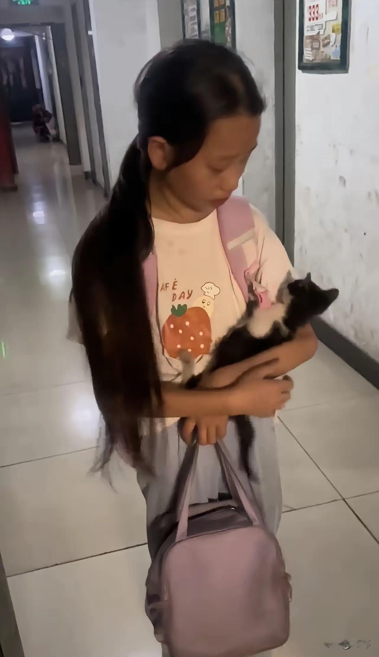 泪目了!这天一位小妹妹放学回家,却唯唯诺诺站在家门口不敢进去,她妈妈通过监控看到了这一幕,于是就在那里看着,看小妹妹到底怎么了。 结果她从书包里掏出一只小奶猫,在那里对着小猫说着什么,她妈妈于是打开门出去,小妹妹满脸担忧的看着妈妈,估计担心妈妈不让她养小猫,可妈妈只是要她说出事情的经过,也答应了她收养猫咪。原来小妹妹放学的时候看到了这只小猫,她觉得它很可怜,于是就想要收养它。 最终母女俩带猫咪检查了身体还打了疫苗,之后就带回去收养了,相信在她们的照顾下,它也能过上幸福的日子。