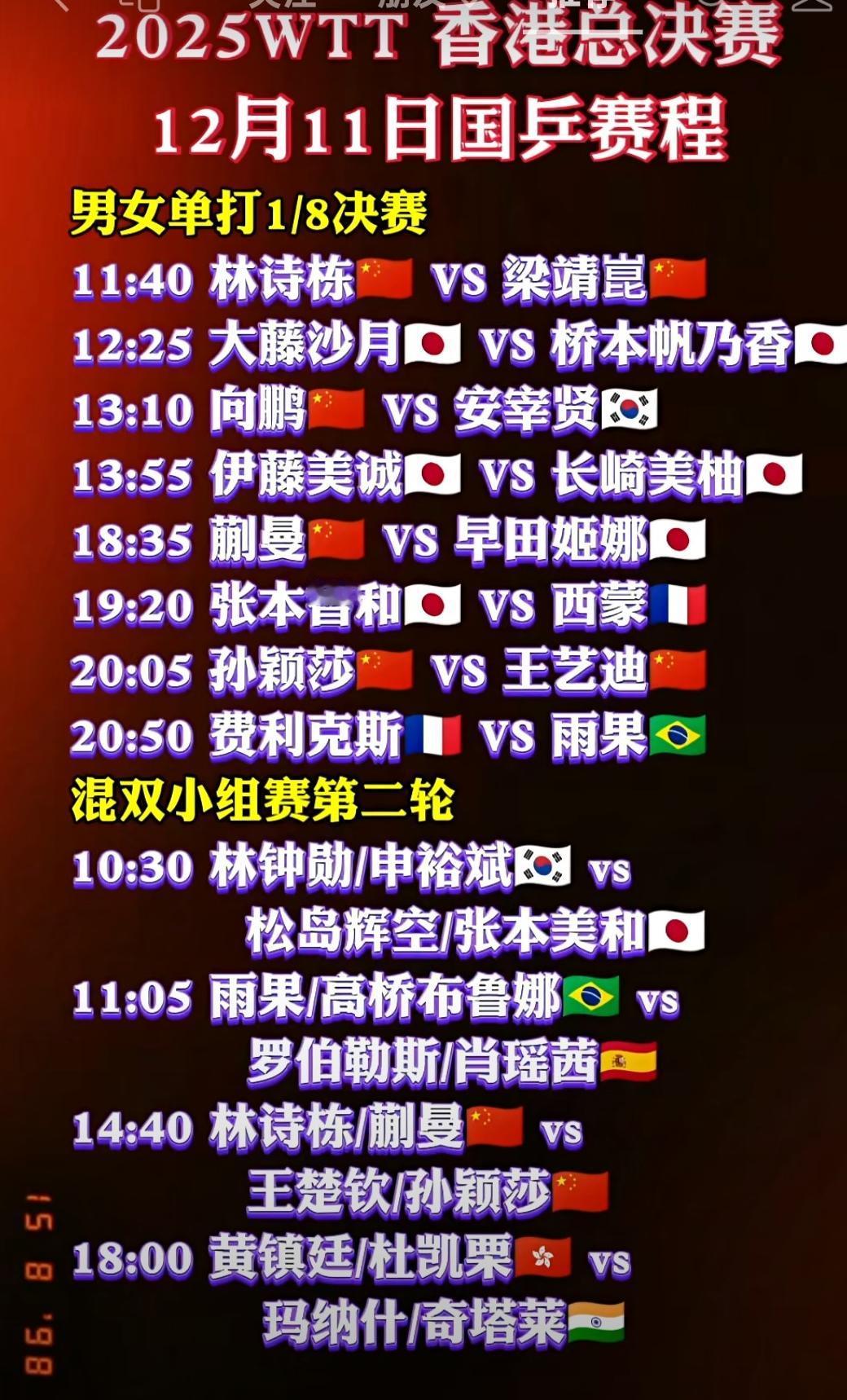 莎莎这又是混双,又是单打,切换得过来吗?看大头单打体力就有太给不上,赢得好累! 这赛程也真是,晚上有单打的,混双安排在上午不行吗?非得挨那么近再一拖场,不知道咋想的。 有时感觉记者很烦,人都累成不成样了,还要去采访东说西说,不知道说话是消耗体力的吗? 采访环节别那么繁琐了,到最后谁拿冠军采访谁吧,从全运会开始,咱们国乒运动员赛程都太密集了,他们太累了,有的还带伤呢。希望不要有太大压力,多休息,放松心情,保持好的状态!