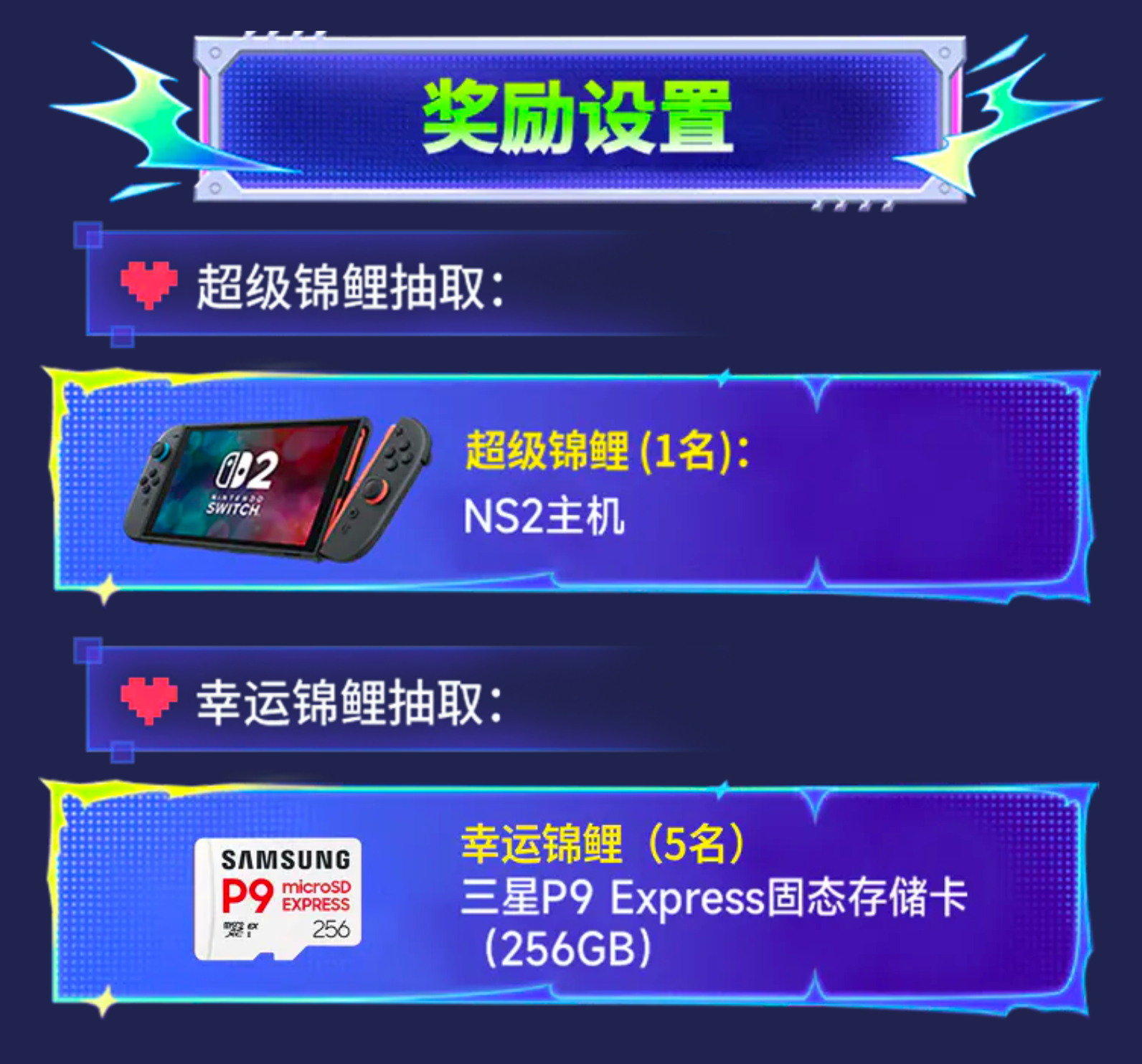 【🎮一起来吐槽!抱走你的Switch 2!🎉】Switch 2 发售已过半年🎮,大家早已沉浸在次世代画质与性能升级的畅快体验中了吧~但随着数字版游戏普及和 3A 大作体积提升💾,存储空间有限和机身散热🔥问题也逐渐显现。越来越多的玩家们也开始期待一个能彻底解决存储不足、加载缓慢和过热困扰的全方位方案🚀!为此,我们联合三星存储一起推出【Switch 2 五大痛点票选】抽奖活动!我们邀请了 5 位资深「超级玩家」盘点 NS2 最抓狂的五大槽点😤,大家可以挑选引起共鸣的痛点投票,还有机会赢取 Switch 2 主机和三星 P9 Express 固态存储卡哦🎁!📌活动时间:12月10日—12月25日 📌活动入口:复制评论区置顶链接在浏览器打开 📌参与方式:进入Jump专题页面,为最有共鸣的痛点投票✅(每个账号限投一次)并撰写「评论」✍️(10字以上)🏅奖品设置:- 超级锦鲤🐟(1 名):NS2 主机一台🎮- 幸运锦鲤🍀(5 名):三星P9 Express 固态 存储卡(256GB)Switch2 三星P9EX固态储存卡 Switch2必备