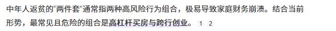 其实普通人返贫“两件套”就是贷款买房和创业。 普通人买房,找银行贷款的金额超过100万,基本就是“好日子”到头了,按照目前最低利率,一个月也要还将近4300,再加上物业费,停车费,一个月固定支出超过5000了。贷款买房就是属于体制内的,收入稳定,公积金高能覆盖月供,普通人真的要量力而行。