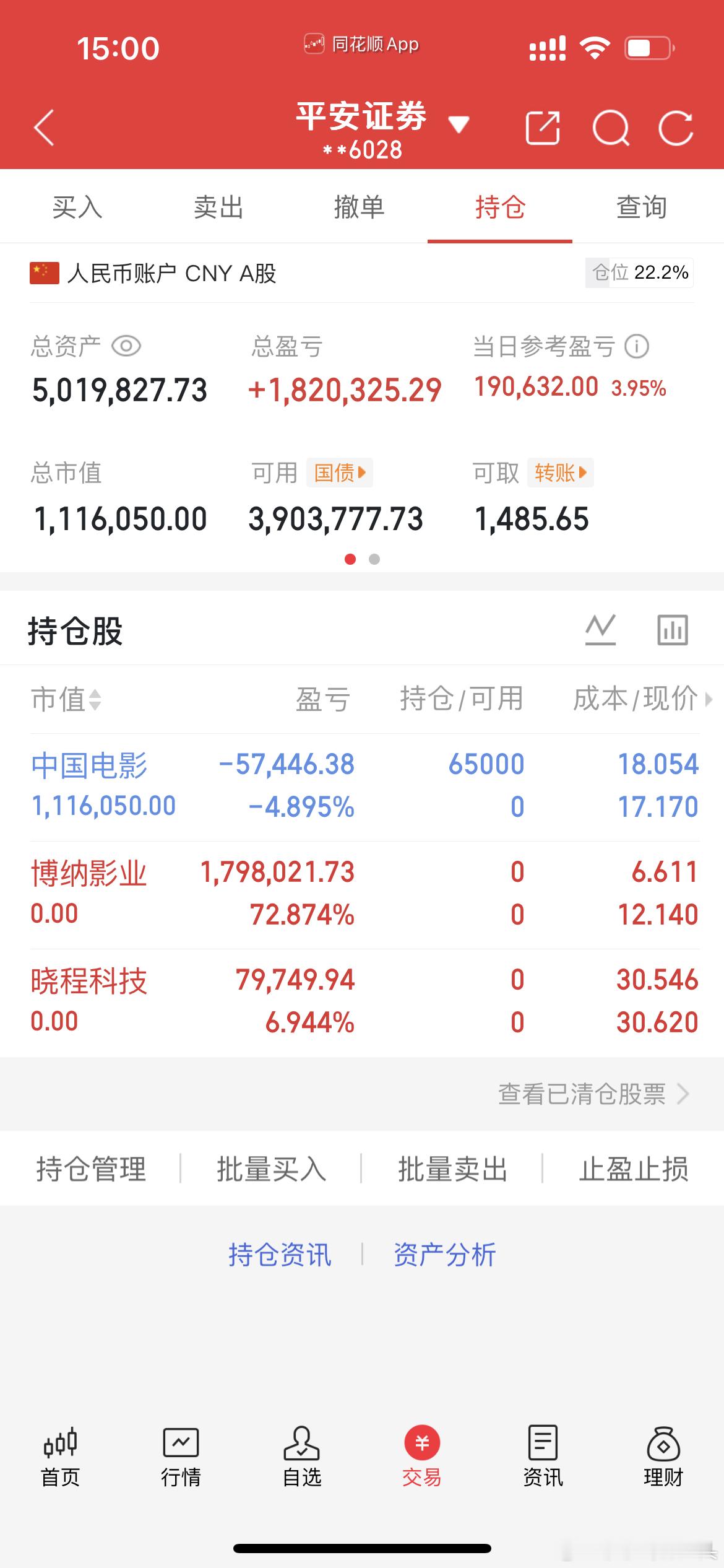 收盘了,今天这么大盘凄凉,个股也不例外,中国电影也被博纳拖下水去了,没有关系今天还是赚了19万,已经知足啦,望兄弟朋友点个赞,评论888给予支持一下