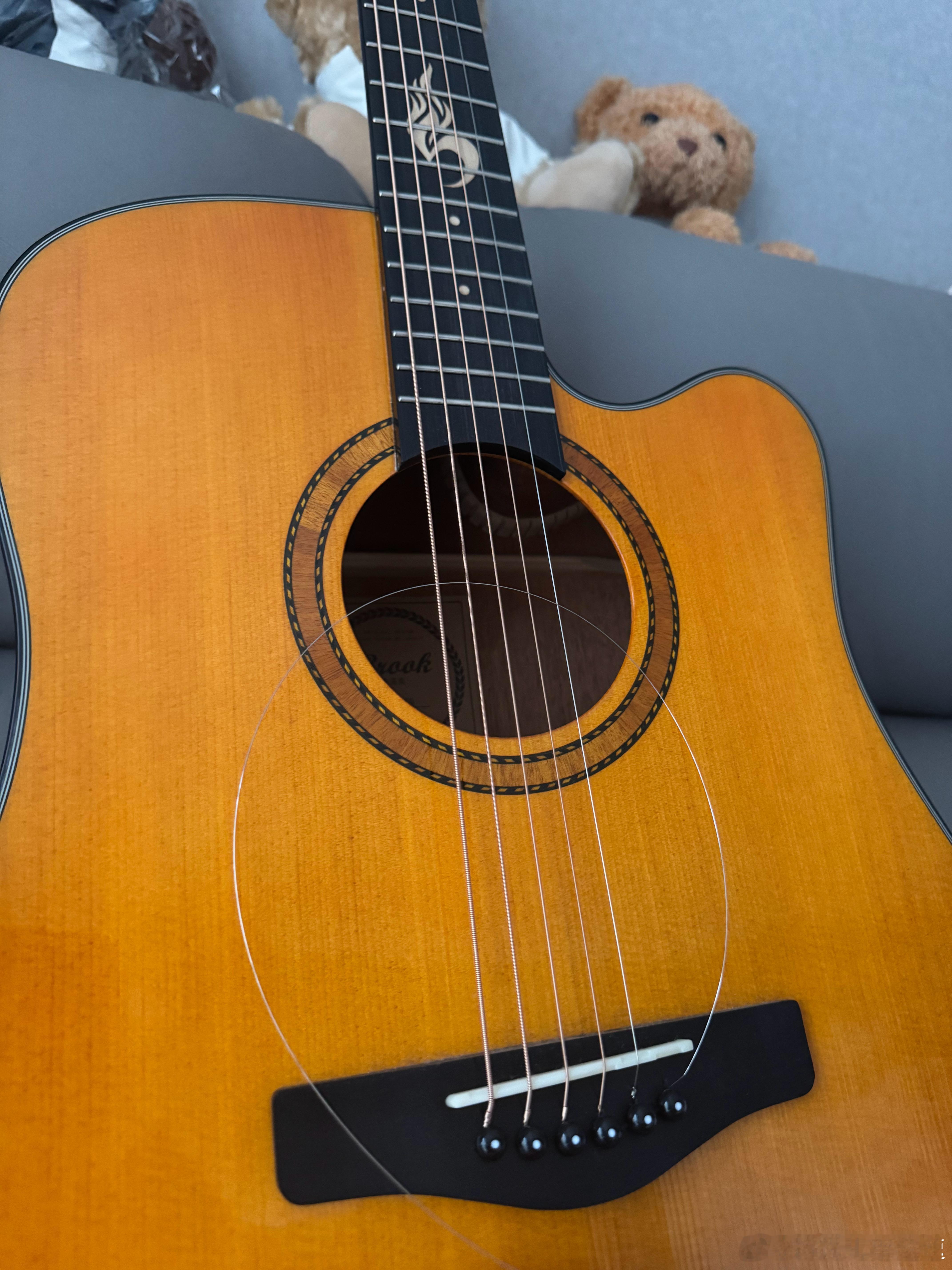 是有日子没好好保养了琴弦就这么崩了还有薄薄一层土吉他