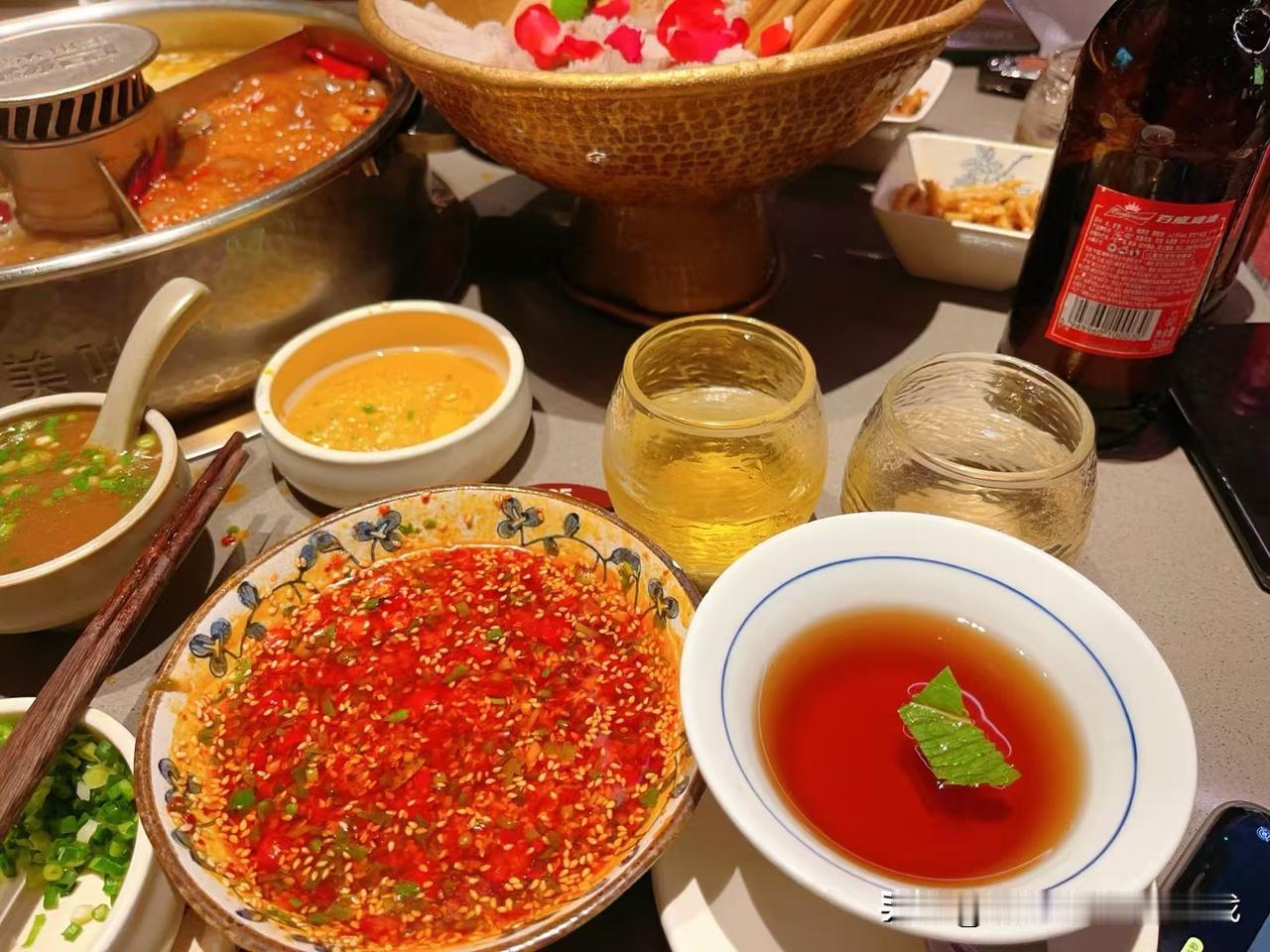 冷飕飕的天,最治愈的莫过于围坐在餐桌旁涮一顿火锅了。 看着红油锅底咕嘟咕嘟冒着泡,麻麻辣辣的香气直钻鼻腔,调一碗铺满芝麻的油碟,再抿一口冰镇的饮品,瞬间驱散了周身的寒意。 锅里煮着爱吃的食材,碗里盛着酸甜解腻的冰粉,热辣与清爽撞个满怀。 原来最动人的从来不是什么山珍海味,而是这满桌的烟火气,是平凡日子里,一顿热乎饭带来的踏实与温暖。