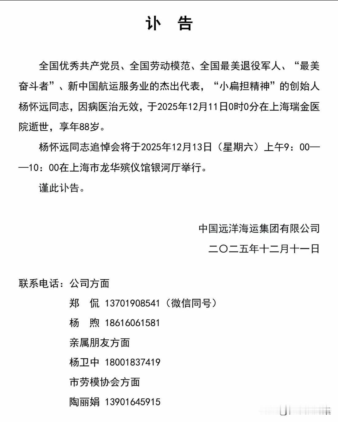 “小扁担精神”创始人杨怀远劳模于2025年12月11日去世,享年88岁。致敬最美奋斗者,致敬最美退役军人!🙏🙏🙏 1960年,杨怀远从部队复员到上海海运局,1962年起,从事客运。服务员工作。三十年的风吹浪打,他坚持心不离群众,肩不离扁担,在平凡的岗位上,树起了一个共产党员的光辉形象,是一代人学习的榜样。 图一为杨怀远在1962年的工作照。图二为杨怀远用扁担为旅客挑行李走在码头上。致敬前辈历史