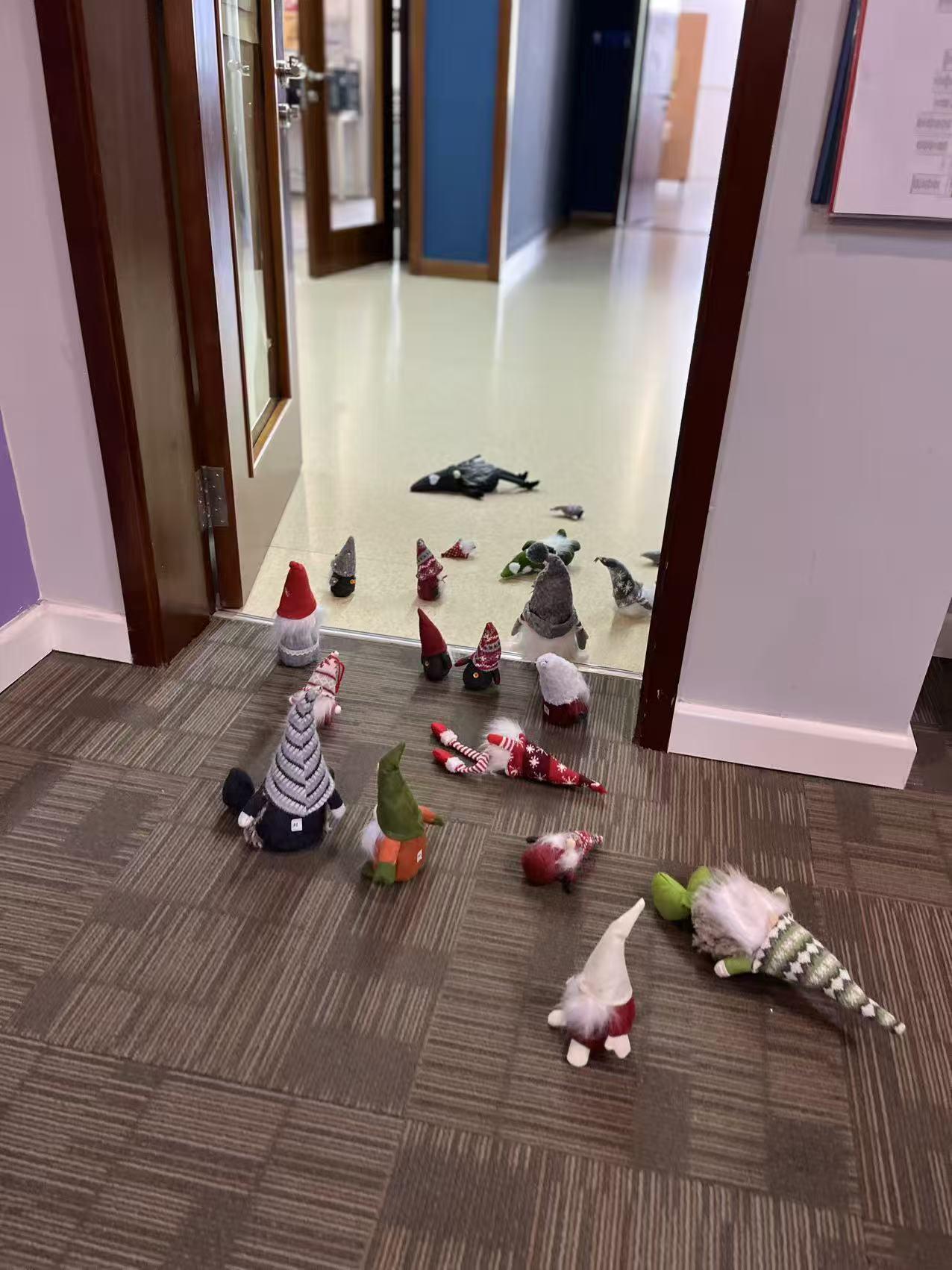 学校一年一度的圣诞节Gnomes Hunting我们喜欢叫它找小人活动,一上午工作群里捷报频传,还有个同事兑换了一提坚果套装,奈何一直有课也没有时间。 一直到下午下课听说还有好多没被找到,赶紧各楼层溜达,像极了小时候在家翻箱倒柜找妈妈藏的糖果,功夫不负有心人,终于在一个圣诞树里面找到了一个,换了个杯套,研究了半天也不知道咋用。[笑哭] 隔壁的同事换了一盒百奇,准备的同事说今天早上两点多过来藏的,今年可能是藏的太隐秘了,到下班的点还有九个没找到,笑死了,欢乐大于礼物哈哈。