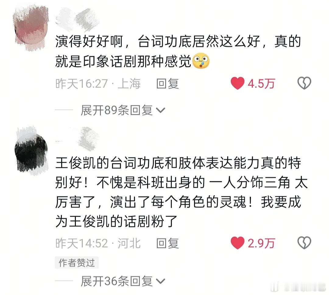 王俊凯话剧反响特别好,专业演员的实力有目共睹24h破百万点赞