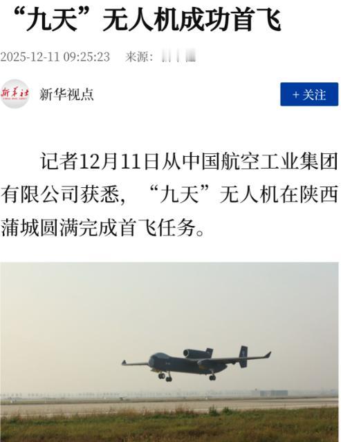 “九天”无人机首飞成功! 大家可能不知道,“九天”无人机有多恐怖? 最大飞行高度15000米,最大飞行时速700公里,最大航程7000公里,最大起飞重量16吨,最大载弹量6吨,更关键的是,8个外挂点既可以挂载1000公斤级的制导炸弹。 12月11号这天,陕西蒲城的机场上,“九天”无人机稳稳完成了首飞,这消息是航空工业集团实打实披露的,央视、新华社这些权威媒体都跟进了报道。 能造出这么个大家伙,背后是三家单位的合力,陕西无人装备科技托了航空工业第一飞机设计研究院搞设计,广州数字科技旗下的海格通信西安驰达负责制造,算是央地合作搞出来的,能看出各方配合得挺默契。 其实它去年11月的中国航展就亮过相,当时就因体型和功能受关注,这次首飞算是真正落地了。 它的硬实力确实能打,机长16.35米,翼展25米,站在旁边得仰着头看。 最大起飞重量16吨,载荷直接拉到6吨,这分量比不少中型有人战斗机还能装。 飞得也够远,转场航程7000公里,要是从东部沿海出发,飞抵关岛再回来都绰绰有余;15000米的升限和700公里的时速,能避开不少防空系统。 最关键的是它的设计思路,“通用平台+模块化”可不是空话。 机翼8个外挂点,内侧能挂1000公斤级制导炸弹,外侧能挂空空导弹;机腹的任务舱更灵活,两小时就能换装,装微型无人机就是作战平台,换物流舱能运8吨物资,换成勘测设备还能去偏远地区做文物普查。 说白了,这事儿不只是多了一款无人机,从民用角度看,偏远山区运重型设备、灾区投送救援物资,以前效率低的难题这下有了新解法。 从技术上说,发动机、AI算法这些核心环节全是自主可控的,没被卡脖子。 而且它能军民两用,规模化应用后能带动整个航空产业链,给低空经济添动力。 这技术放在同类产品里确实靠前,能看出来咱们在无人机领域的步子迈得挺大。 以上都是个人观点,对此您有什么不同的看法,可以在评论区留言讨论!!!