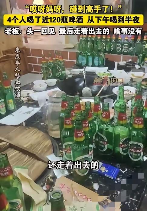 “强得可怕!”12月9日,吉林,4名男子在饭店聚餐时,一共要了12箱啤酒,平均每人喝了30瓶,结果喝完后各个都跟没事人一样,悠闲的走出了饭店!老板表示开饭店这么多年,也是要第一次遇到。网友:水里掺酒了? 说真的,这事放谁身上谁都得犯嘀咕,你说东北人能喝,大家都知道,但一口气把啤酒当茶喝,这就有点超出普通人想象了。老板一开始都替他们捏一把汗,还劝他们少点,喝完再上,结果这几位直接一句“先来10箱”,态度特别淡定,好像在说:今天就图个痛快。 从下午五点到半夜十二点,几个人一边唠嗑一边喝,菜也没少吃,酒是一箱一箱往下见,脸不红、眼不花,说话逻辑还挺清楚,旁边桌的客人都看傻了,有人悄悄问老板:“这几位是不是练过?”更绝的是,最后又加了两箱,虽然没全干完,但也没剩几瓶,结完账,四个人是稳稳当当走出去的,连门都没扶一下。 我个人倒是觉得,能喝是本事,但真没必要把“喝得多”当成什么荣耀,酒量再大,身体也扛不住,胃和肝是真金白银换来的。喝酒图个气氛、图个开心就行,别拿自己当“酒桶”,喝到第二天难受的还是自己。你们身边有这种“酒桌狠人”吗?你觉得酒量好,到底算本事还是负担?欢迎在评论区说说你的看法。