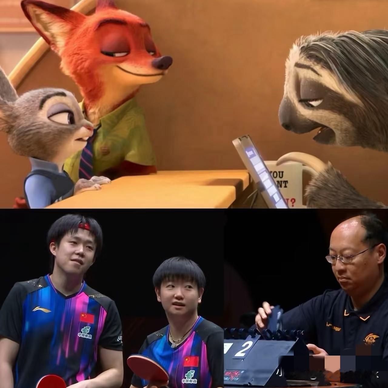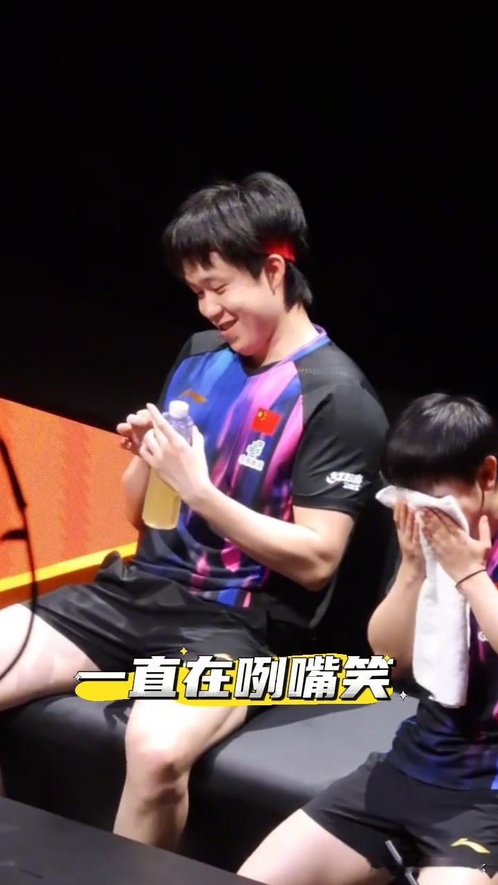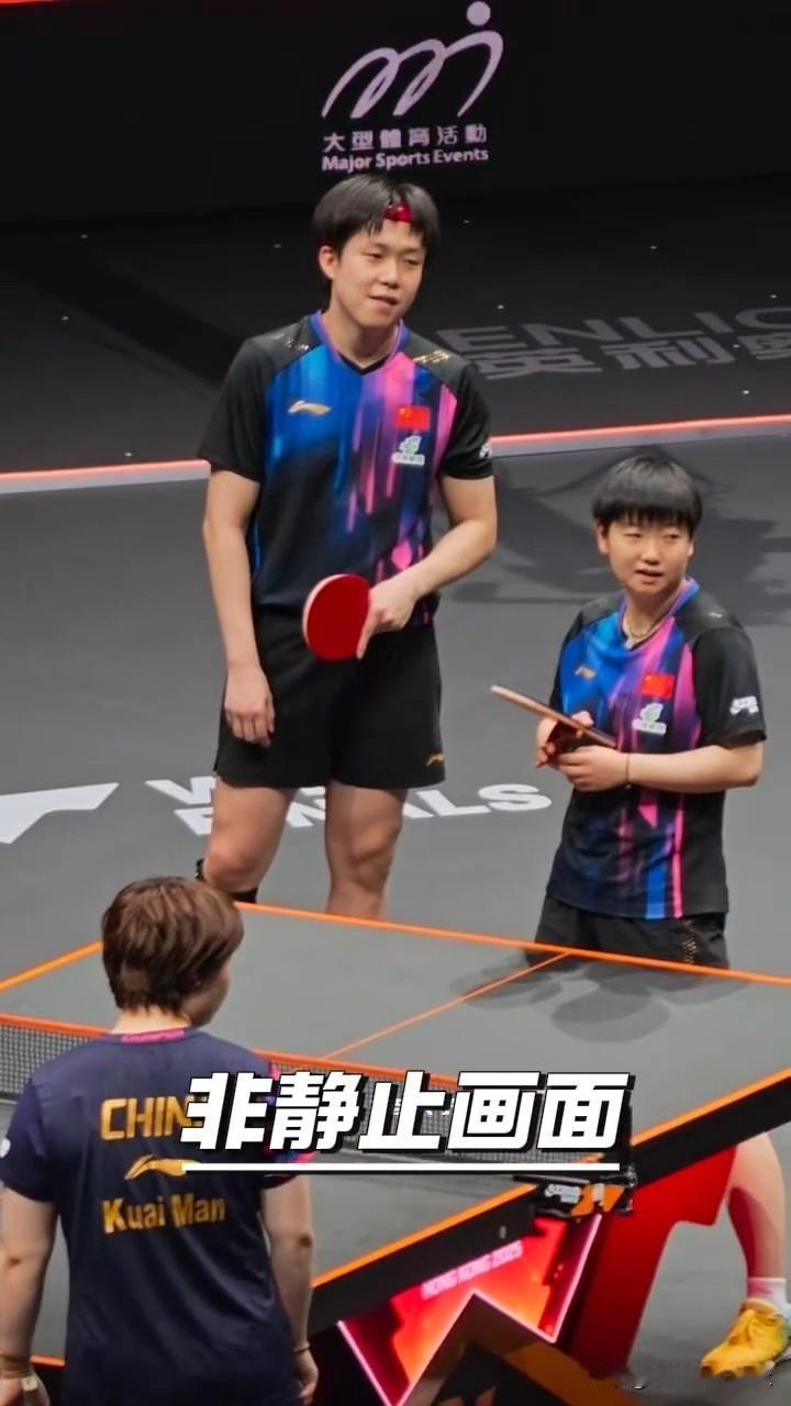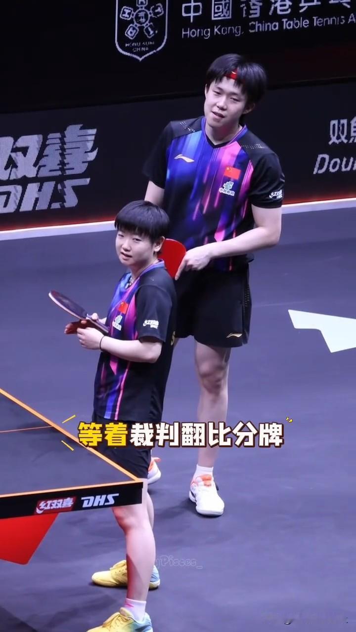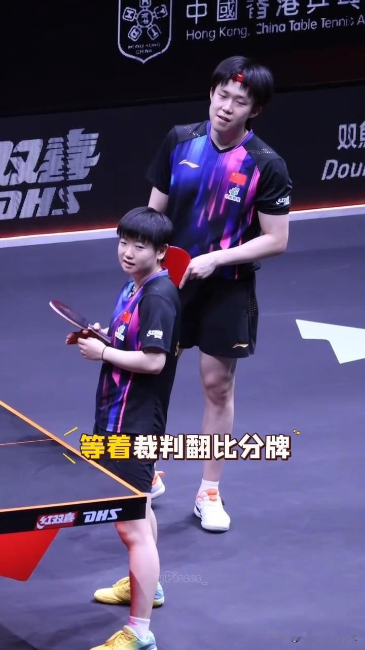 王楚钦孙颖莎就这样憋着笑等裁判翻分数牌[耶] 今天王楚钦孙颖莎3-0赢了林诗栋蒯曼,最后一个球有一点争议,然后大头和莎莎就这样微笑着等裁判打分 也是巧,裁判这时候翻得又不顺利,越忙越乱,越乱越慌[耶],半天翻不出来 林诗栋,就这样吧!反正打不赢的 咱们混双老祖一出,谁与争锋,大头和莎莎在后面坐着之后都还在憋笑 大头莎莎:死嘴,别笑 裁判:死手,快翻