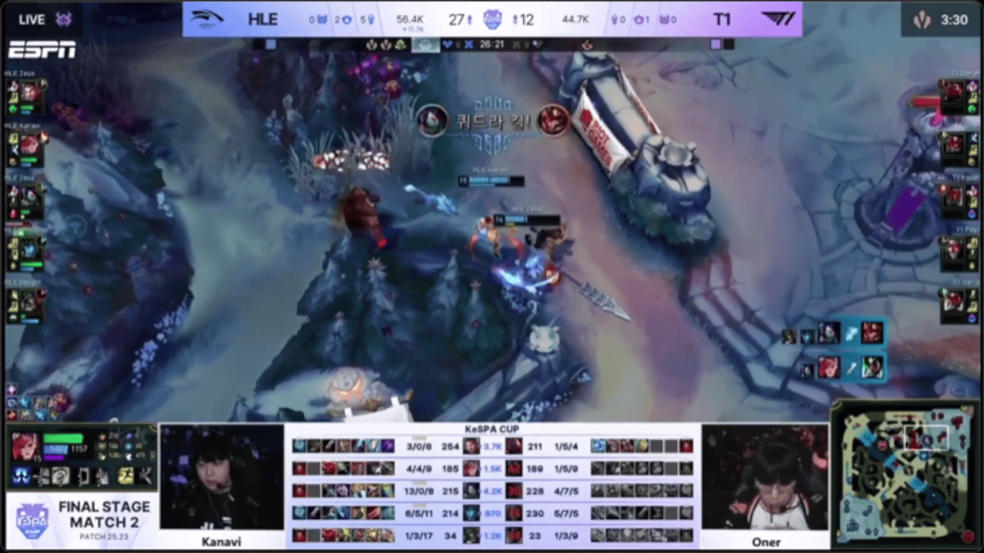 虎扑12月11日讯[GAME3]HLE蓝色方、T1红色方