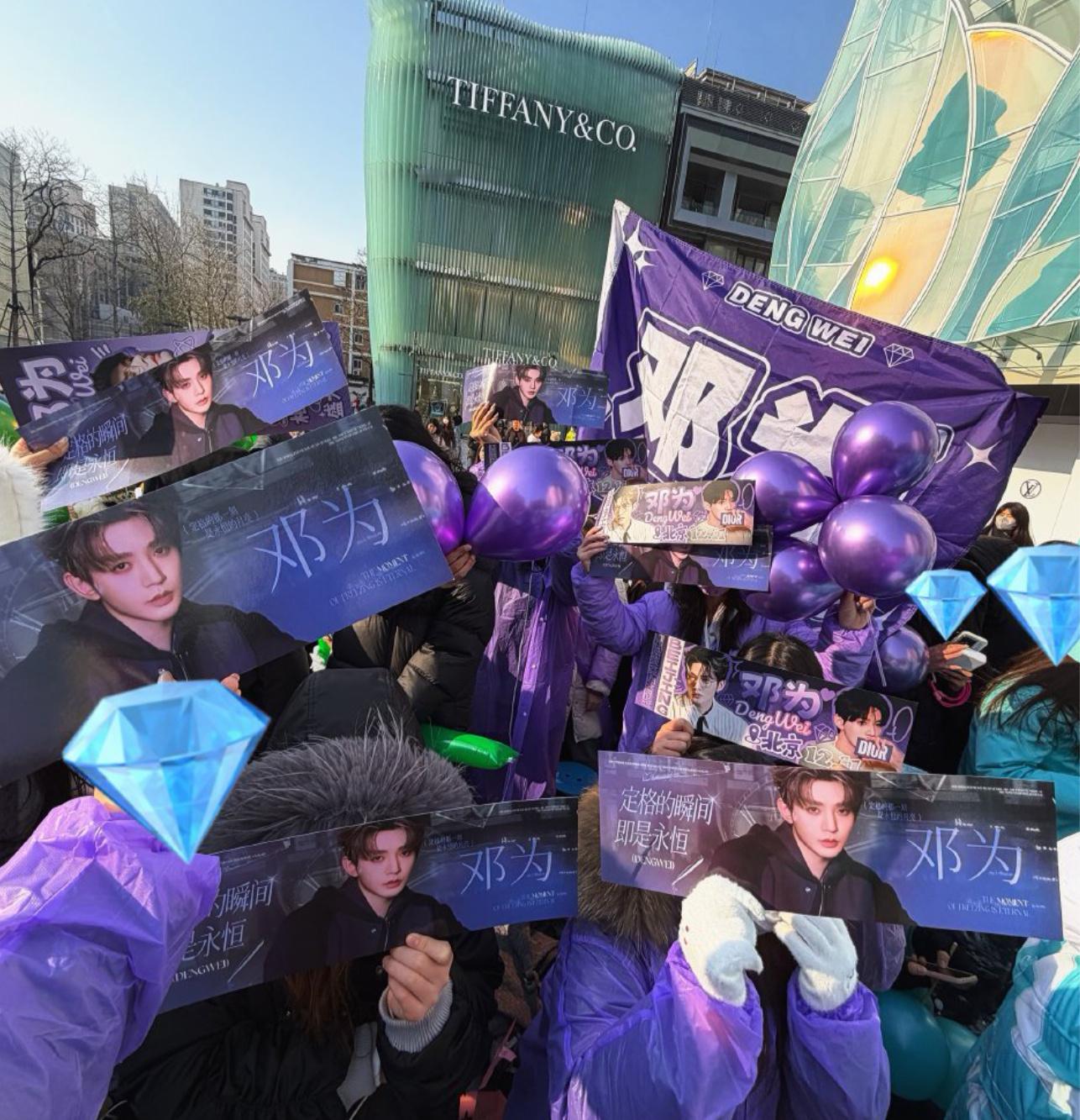 邓为今日北京三里屯Dior中国最大旗舰店开业活动,钻石的紫色应援排面太可以了!