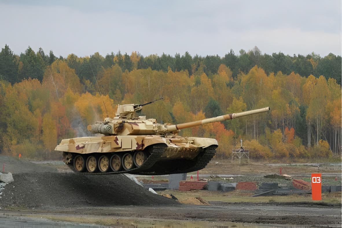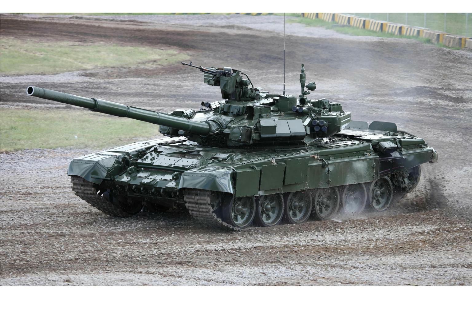 俄罗斯T-90主战坦克T-90坦克是俄罗斯于20世纪90年代研制的主战坦克,1995年开始服役,有T-90A、T-90E、T-90S和T-90SK等多种衍生型号。T-90坦克主要装备俄罗斯军队和印度军队,阿尔及利亚、沙特阿拉伯、塞浦路斯和土库曼斯坦等国也有采用。T-90主战坦克采用125毫米口径滑膛炮,型号为2A46M,并配有自动装填机。该炮可以发射多种弹药,包括尾翼稳定脱壳穿甲弹、破甲弹和杀伤榴弹,为了弥补火控系统与西方国家的差距,该坦克还可发射AT-11反坦克导弹。AT-11导弹在5000米距离上的穿甲厚度可达850毫米,而且还能攻击直升机等低空目标。T-90坦克的辅助武器为1挺7.62毫米并列机枪和1挺12.7毫米高射机枪,其中7.62毫米并列机枪一次可装弹250发,备弹7000发,12.7毫米高射机枪备弹300发。T-90坦克的装甲防护包括复合装甲、爆炸反应装甲和传统钢装甲三种。爆炸反应装甲安装于炮塔上,包括炮塔顶部,以抵御攻顶导弹。炮塔前端还加装了两层复合装甲特别加强保护,这种复合装甲通常采用特殊塑料和陶瓷制成。|
