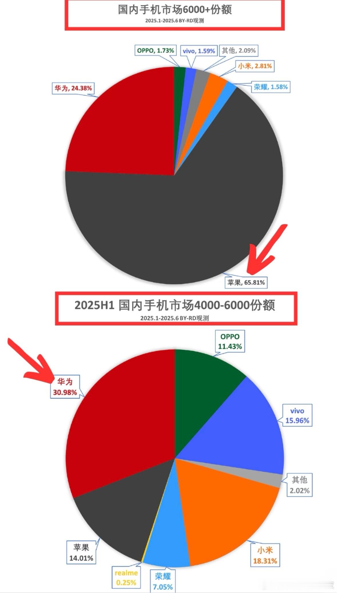 华为NB,只要是能挤占苹果高端市场份额的手机都支持,目前苹果占据6000+以上60%以上的份额,分走了手机利润的75%以上,其他厂家只能喝汤华为Mate80销量