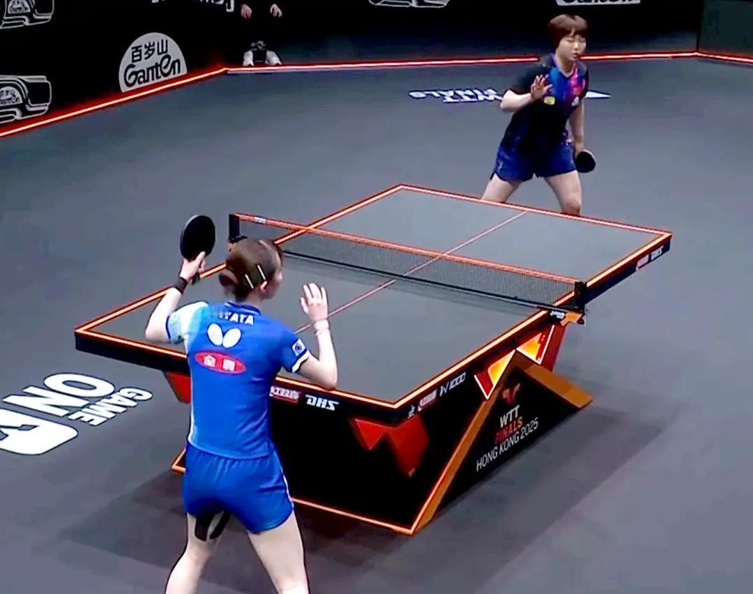 WTT香港总决赛,早田希娜首轮对中国队员蒯曼,赛前两名男队员陪练,[捂脸][捂脸]自信满满结果被蒯曼4一0剃光头一轮游了[捂脸][捂脸] 蒯曼4一0早田希娜,11一5,11一6,11一6,11一5 成都混合团体赛上蒯曼得到了锻炼,混双,单打,女双,她都有很多机会上场,反观日本的早田希娜却没机会上场,日本队上场多的队员是张本美和,大藤沙月,伊藤美诚。 早田希娜自己没想到会0一4剃光头[捂脸][捂脸][捂脸]