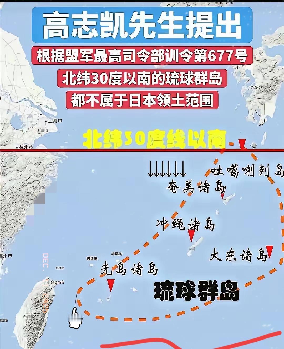 真厉害👍👍👍 高志凯教授把盟军最高司令部训令677号都扒出来了,并明确指出:北纬30度以南的琉球群岛,根本不属于日本领土的范围。 铁证之下,日本对琉球的主张就是无本之木!1946年的677号训令是落实二战国际协议的关键文件,直接把日本施政权钉死在四大主岛,明确将琉球群岛排除在外,本质是剥夺其侵略所得的领土权益。 日本后来靠《旧金山和约》《冲绳返还协定》蹭到的管辖权,不过是美国冷战时期的私相授受,既没经过中苏等盟国认可,也违背了“四国共同决定”的法定程序,根本不具备完整国际法效力。 高教授扒出这份训令,不是单纯摆历史,而是戳破日本模糊领土事实的把戏,守住二战后国际秩序的根基。 历史真相从不会被篡改,琉球的法律地位从来都是“未定”。你觉得这份铁证会推动琉球问题的重新讨论吗?