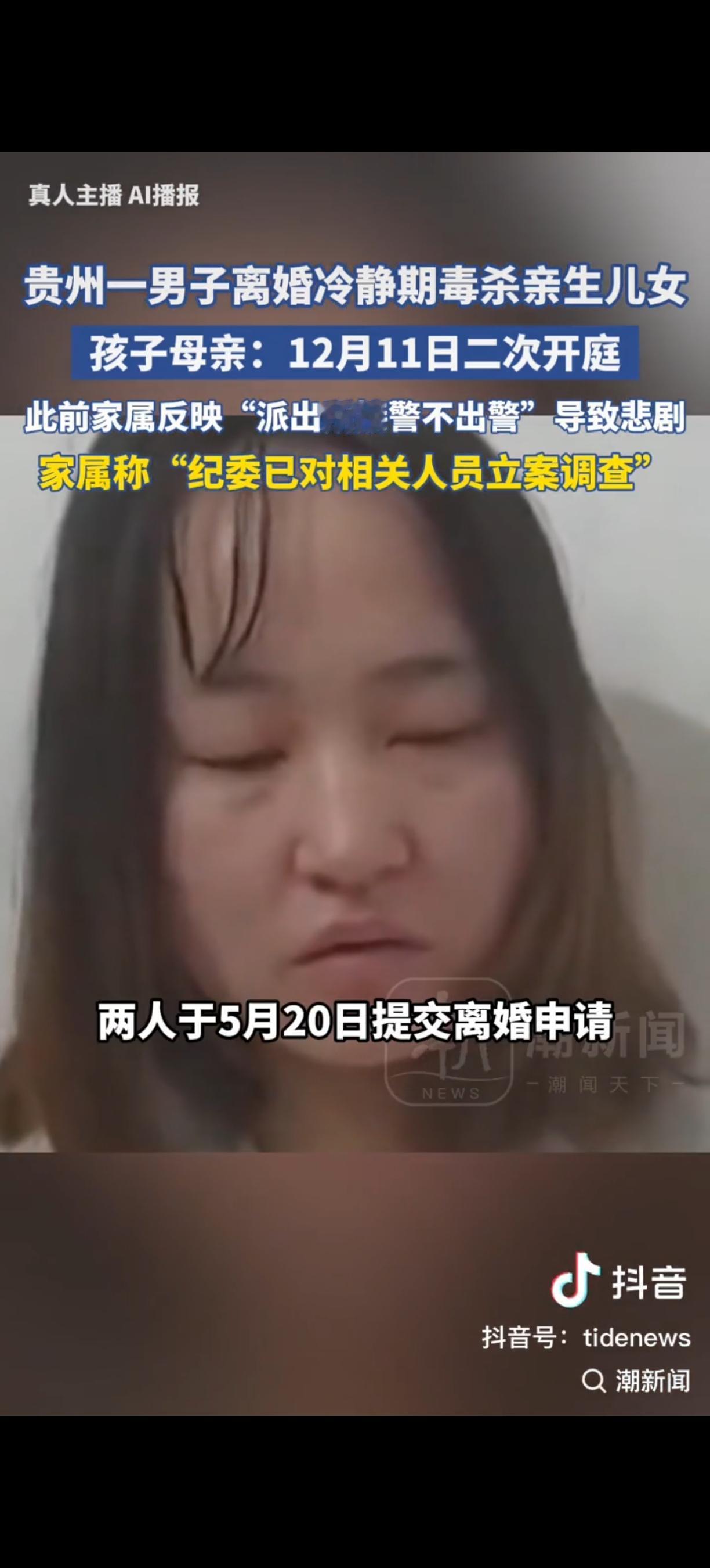 贵州,父亲骗一双儿女喝下农药,说喝了之后带他们找妈妈,结果却是让他们陪自己一起去死。可他自己只喝了少量,还提前拨打了120,最后竟然得救了。如今妻子悲痛不已,除了追究丈夫的责任,还提起了诉讼,想要国家赔偿,因为她曾报过两次警,民警却没有介入。 这事发生在贵州遵义凤冈县,这个父亲叫刘杰。他和妻子黄飞飞因为他反对妻子直播的事闹了矛盾,5月20日两人提交了离婚申请,进入了冷静期。可第二天刘杰就反悔了,还把黄飞飞捆绑起来,拿着农药威胁要同归于尽。黄飞飞好不容易逃出来后,和弟弟先后报了两次警,可民警没介入。 5月22日凌晨,刘杰骗10岁的儿子和8岁的女儿喝下农药,自己只喝了一点点,还提前打了120,最后他活下来了,两个孩子却没了。之后刘杰被刑拘,他在遗书里指责黄飞飞直播出轨,可黄飞飞说那些暧昧称呼只是为了维护粉丝,根本没有实质出轨行为。 现在,案件一审将于12月11日二次开庭,凤冈县纪委也已经对相关人员立案调查。黄飞飞觉得是警方不作为才导致了悲剧,所以不仅要追究丈夫的责任,还提起行政复议申请,想要国家赔偿。 一边是母亲失去孩子的无尽悲痛,一边是警方接警处置的争议,这事儿让所有人都揪心。大家都盼着能有个公正的结果,也希望这样的悲剧再也别发生了。 各位读者你们怎么看?欢迎在评论区讨论。 来源:潮新闻 2025-12-8报道