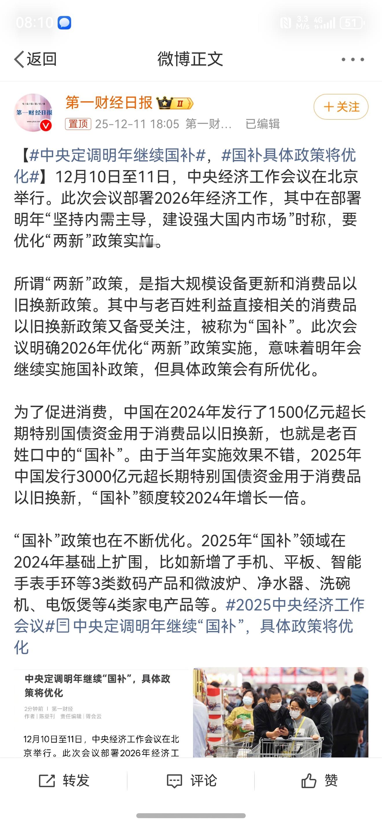 中央定调明年继续国补 哇喔,明年还有国补新房子正好要买一些大家电,希望能赶上
