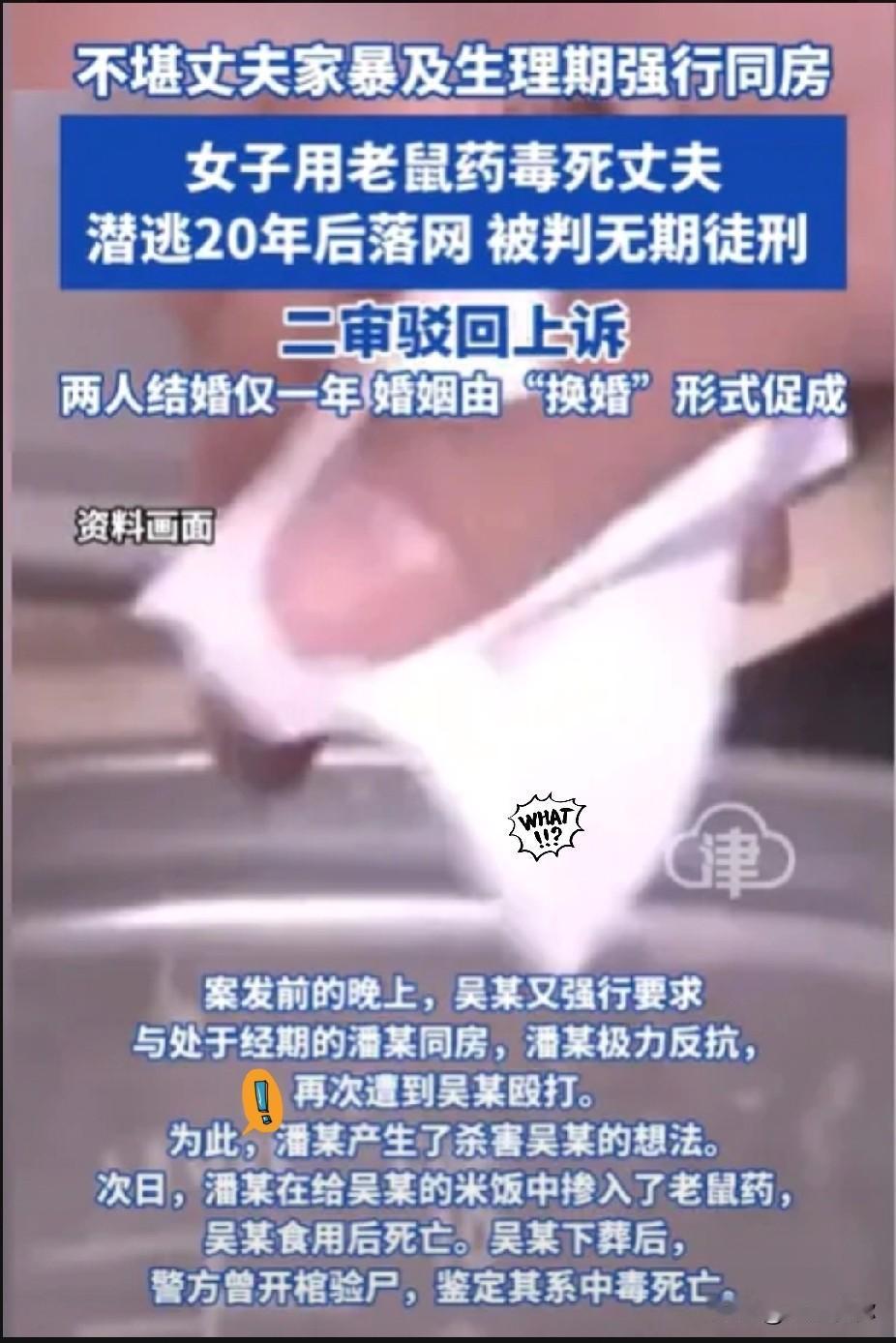 江西,女子生理期,丈夫强行和她发生了关系,事后,她看着满床的血,脑海里不断地浮现着,自己不停地被丈夫家暴,还经常在她的生理期,强行与她干这种事,她非常愤怒,她做出了一个决定,第二天,她在丈夫的饭里放了老鼠药,毒死了丈夫,她开始了27年的潜逃! 那满床的血迹,压垮的不只是她的尊严,更是那个年代女性维权无门的绝望。婚内强迫本就可能构成犯罪,可二十多年前,“劝和不劝分”的观念和缺失的求助渠道,把她逼上了以暴制暴的绝路。 她以为毒死丈夫是解脱,却没想到要在恐惧和孤独中逃亡半生。真正该被谴责的,从来不是忍无可忍的受害者,而是施暴者的嚣张和社会支持的缺位。 如今反家暴机制越来越完善,可还有多少隐秘的伤害在发生?如果你遇到这种情况,会选择怎样保护自己?夫妻冲突 婚内冷暴力 乱搞男女关系