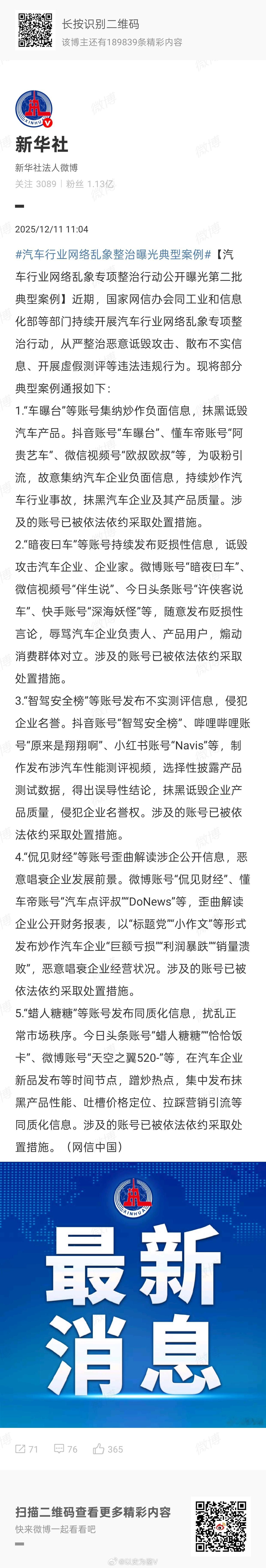 汽车行业网络乱象整治曝光典型案例“要是哪天封号了,我会更开心,因为不用再在烂泥塘里打滚了”热点观点全网热点共创计划