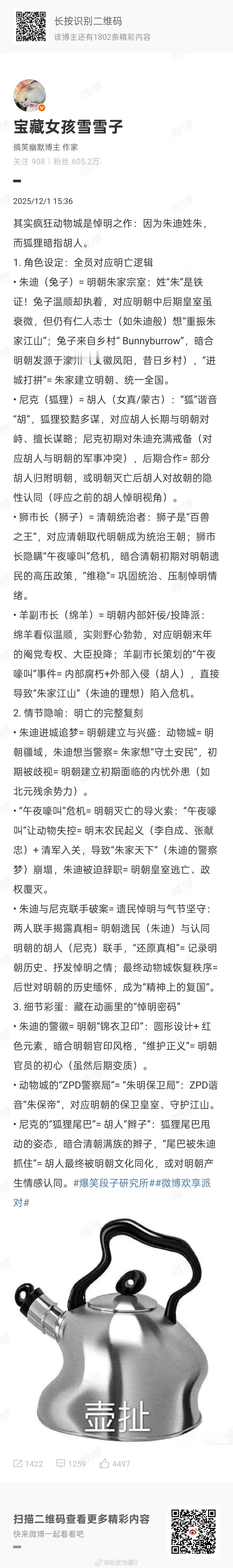 疯狂动物城 悼明之作 笑死,网友找到《疯狂动物城2》也是一部悼明之作,理由很明显:主角朱迪谐音朱棣……热点观点