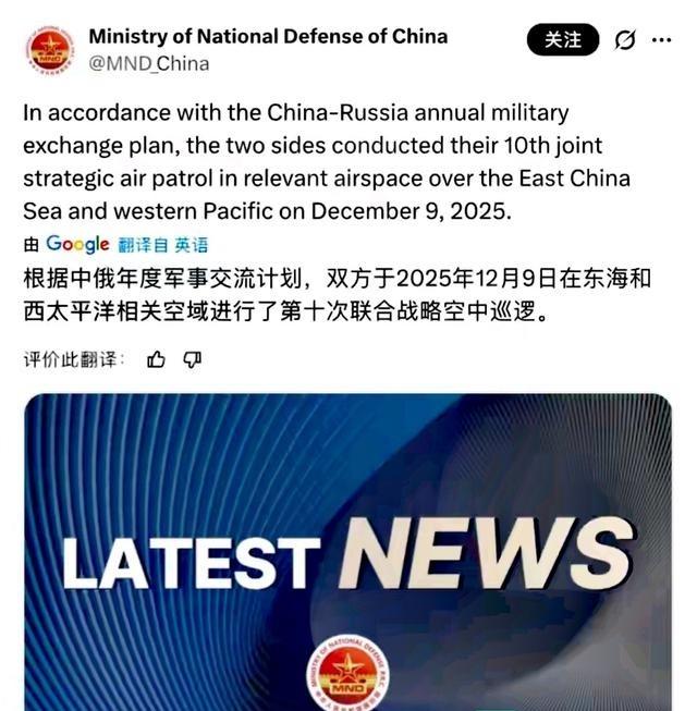来自日本防卫省消息说,当天两架俄罗斯图95轰炸机和两架轰六轰炸机在东海进行汇合,然后沿着太平洋进行了一次远程飞行。日本防卫省强调,作为回应,日本方面紧急出动航空自卫队战斗机。事实上,日本的紧张可见一斑。那就是因为我们和俄罗斯的战机进行了一次例行的航空飞行,这让日本感觉到非常紧张。 日本防卫省先跳出来发消息,说当天两架俄罗斯图-95轰炸机从日本海那边过来,在东海跟两架中国轰-6轰炸机碰头,然后一起往太平洋西部飞了个长距离航程。日方还特别点明,为了应对这个,他们赶紧让航空自卫队出动战斗机去盯梢。这反应速度快得像触了电,日本的紧张劲儿确实挺明显的。话说回来,这本来就是中俄空军按年度计划搞的第10次联合空中战略巡航,纯属例行公事,目的是加强两军协作,维护地区稳定,不是冲着谁去的。可日本这边一看到飞机影子,就觉得压力山大,这里面门道不少,得慢慢扒拉扒拉。 根据中国国防部的回应,这次巡航在中俄2025年军事合作框架下进行,两国空军在东海和太平洋西部空域行动。俄罗斯国防部也确认,图-95MS战略轰炸机和中国轰-6K轰炸机一起飞了8小时,覆盖日本海、东海和西太平洋,期间有歼-16战斗机护航,还有俄方A-50预警机和苏-30战斗机在日本海活动。航线具体走法是,俄机从对马海峡进东海,会合后穿越宫古海峡,到本州岛南侧空域转弯返航,离日本四国海岸约300公里,东京湾外头700公里左右。整个过程没进任何国家领空,全在国际空域操作,符合国际法。韩国那边也掺和进来了,他们联合参谋本部说,当天上午10点左右,7架俄机和2架中方飞机进了韩国防空识别区,停留1小时就走了,也没越界,韩方同样派战机升空监视。这说明巡航影响面广,但本质上就是两国空军常态化练兵。 日本为什么这么敏感?说白了,最近他们自己动作太多,先是炒作辽宁舰编队在宫古海峡以东训练时,舰载机开了搜索雷达,结果日方F-15战机自己凑上去,说是被“照射”了,闹得沸沸扬扬。中国海军12月7日就公开了训练海空域预告,可日方一口咬定没收到通知,还在记者会上强调“信息不足,无法避免风险”。这事儿搁谁身上都觉得蹊跷,日本防卫大臣小泉进次郎在X上发帖,直言中俄行动是“明确针对日本的示威”,活动范围扩大、力度加大,对国家安全构成严重威胁,还夸自卫队“专业素养高”。但从事实看,这次巡航规模不算大,就两架图-95、两架轰-6,加上护航机,比前几次去关岛或阿拉斯加的还小。关键是航向,这次没直奔美军基地,而是拐向东京方向,折返点离东京才600公里,中俄轰炸机射程够覆盖,这让日方觉得像在敲门。 从大局看,中俄这套组合拳挺有讲究。联合巡航从2019年起步,已成机制化,今年第10次,逐步从双轰炸机编队升级到多机型协同,包括预警机和加油支持,显示两军联合能力上台阶。俄罗斯国防部强调不针对第三方,中国国防部发言人张晓刚也说,这是应对地区挑战的决心。反观日本,总是把正常军事活动渲染成威胁,为自己扩军找借口。国际观察家指出,日本冷战思维作祟,忽略中俄合作对全球稳定的积极作用。韩国反应虽也急,但没日本那么歇斯底里,更多是例行监视。 总的来说,这次事件暴露了东亚空域的微妙平衡。中俄巡航是和平姿态,日本的过度解读反倒凸显自身不安。长远看,如果日本继续右转,激化中日俄矛盾,下次巡航说不定就穿越更多海峡了。希望各方多点理性,少点炒作,别让地区热起来。话说回来,军事合作本该透明,中俄都公开了计划,日本要是真想稳,该多沟通少猜忌。毕竟,亚太和平靠大家抬轿子,不是谁单干。